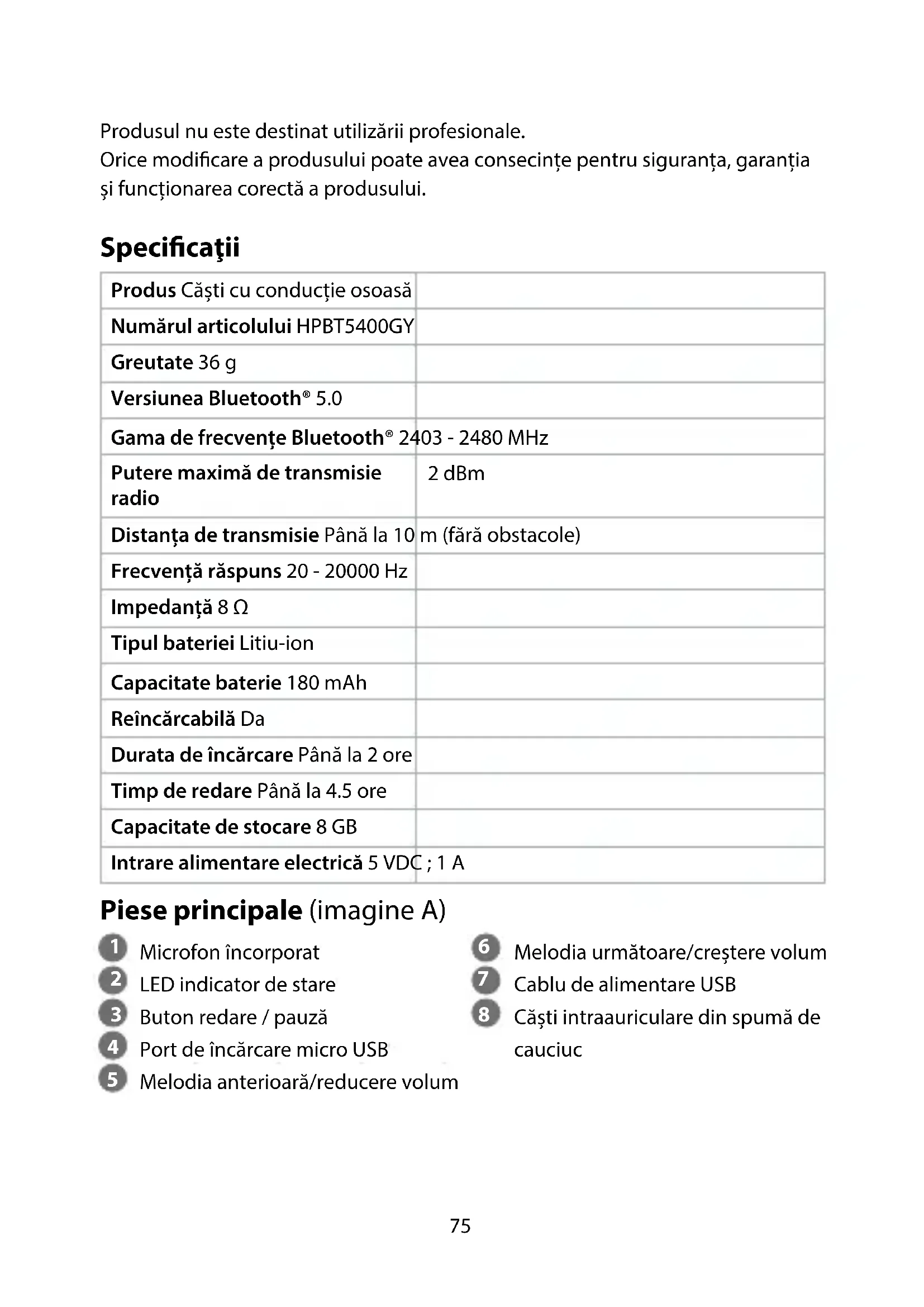 - Pentru a preveni posibila afectare a auzului, nu ascultați la niveluri mari ale volumului sonor pentru perioade lungi. Utilizarea produsului