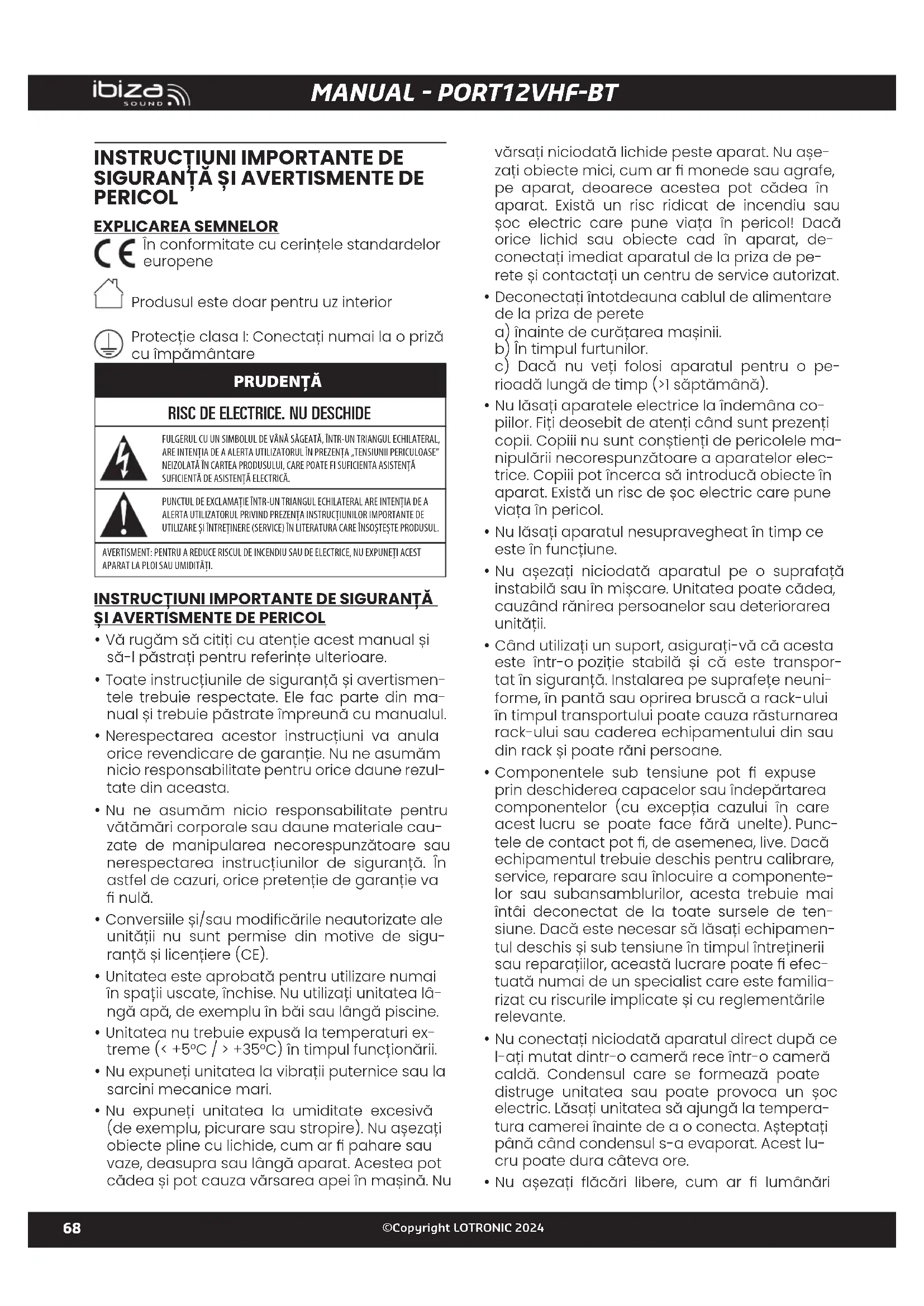 MANUAL DE UTILIZARE PORT12VHFBT IBIZA SOUND