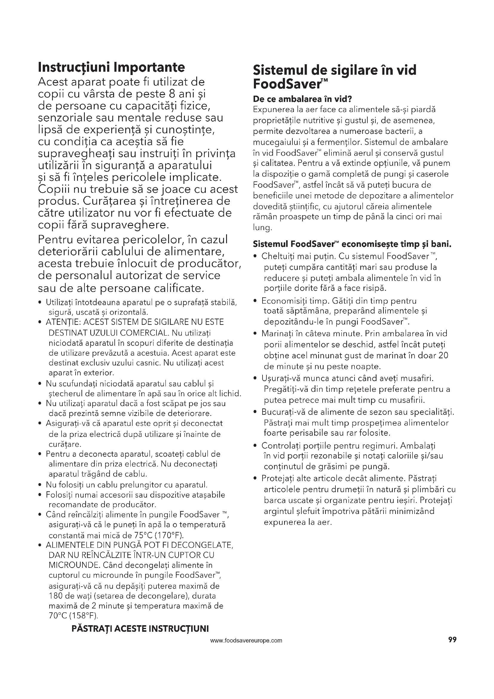 PĂSTRAȚI ACESTE INSTRUCȚIUNI