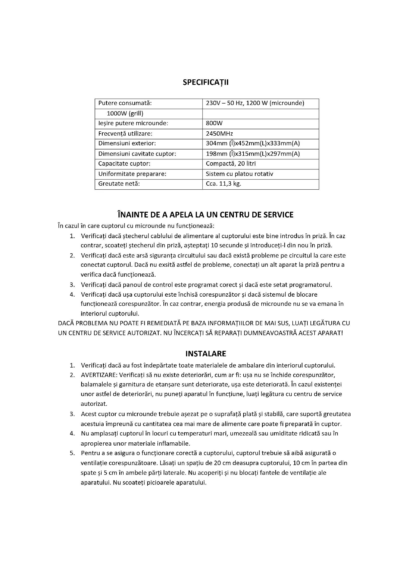 ÎNAINTEDEAAPELALAUNCENTRUDESERVICE Încazulîncarecuptorulcumicroundenufuncționează: