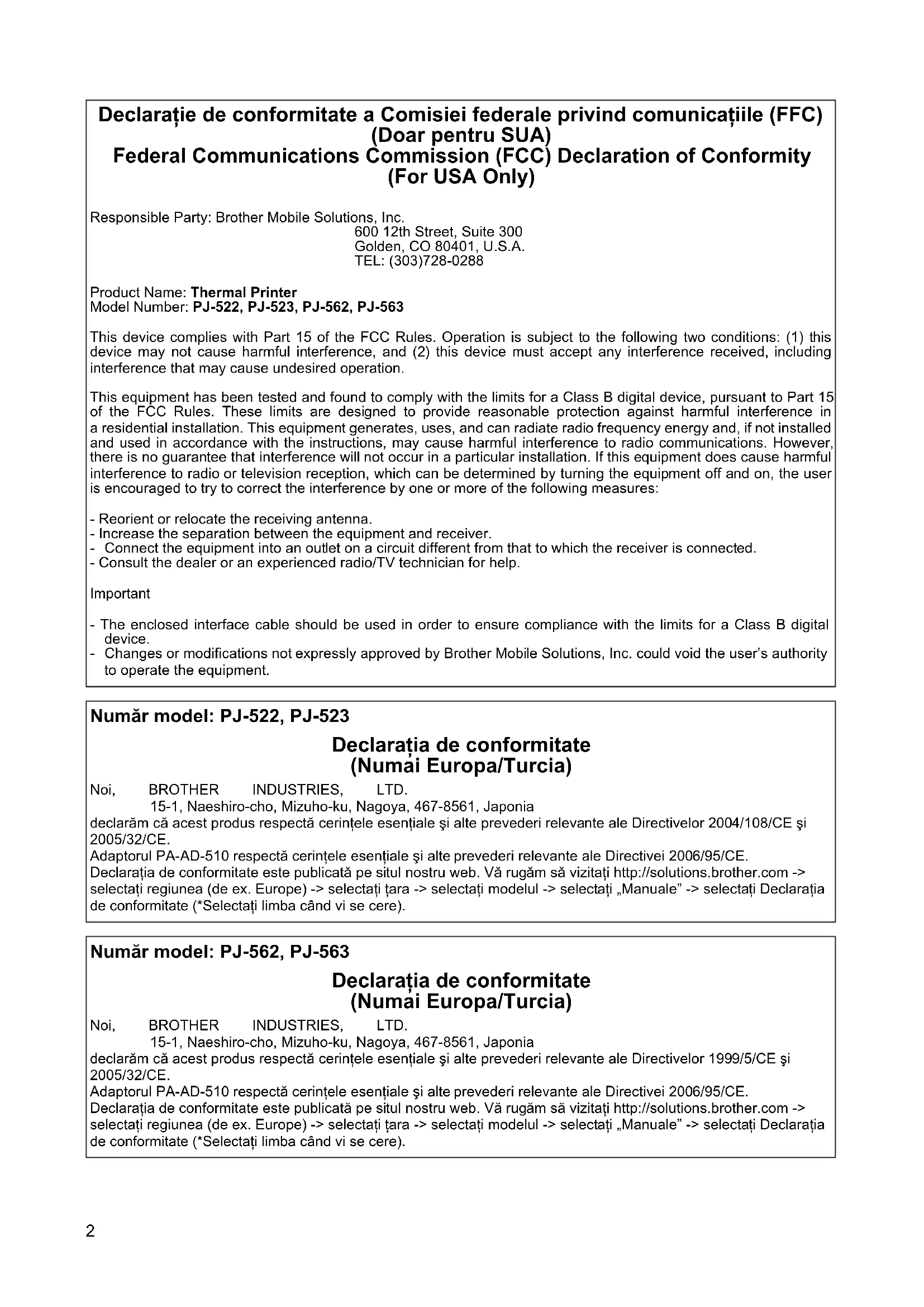 MANUAL DE UTILIZARE PocketJet PJ522 BROTHER