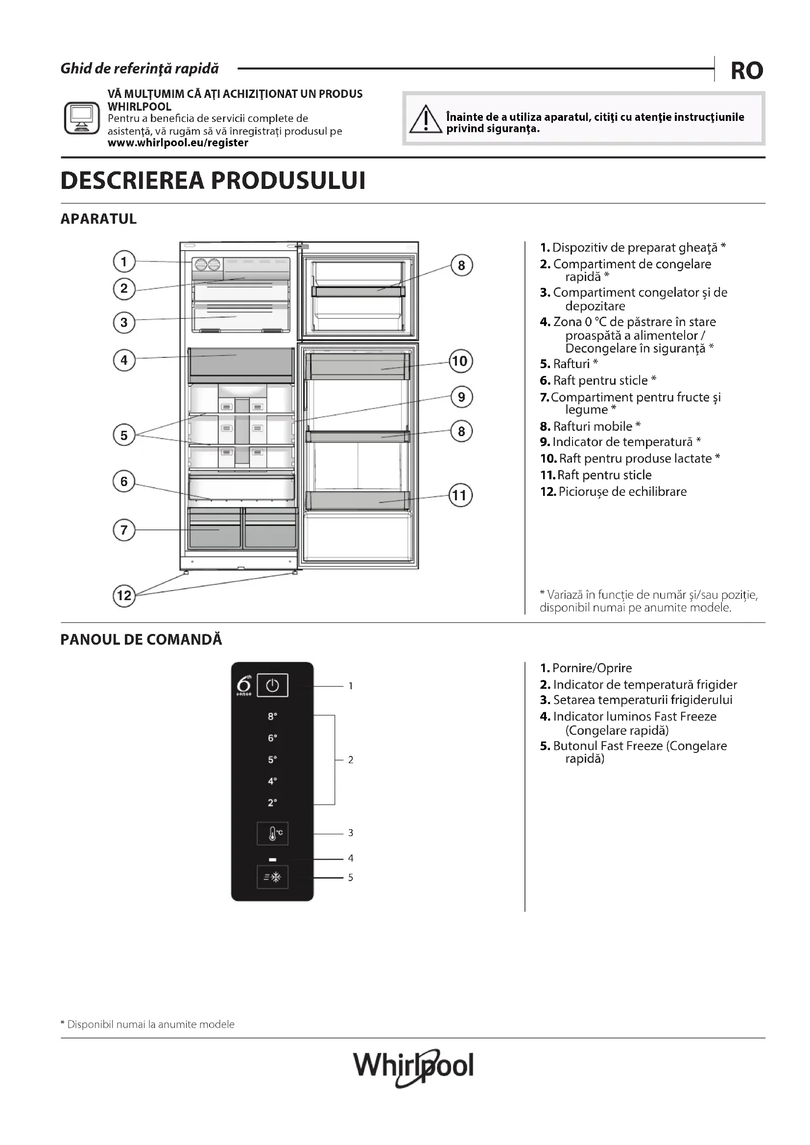 VĂ MULŢUMIM CĂ AŢI ACHIZIŢIONAT UN PRODUS WHIRLPOOL Pentru a benecia de servicii complete de asistenţă, vă rugăm să vă înregistraţi produsul pe www . whirlpool . eu/ register Înainte de a utiliza aparatul, citiţi cu atenţie instrucţiunile privind siguranţa.
