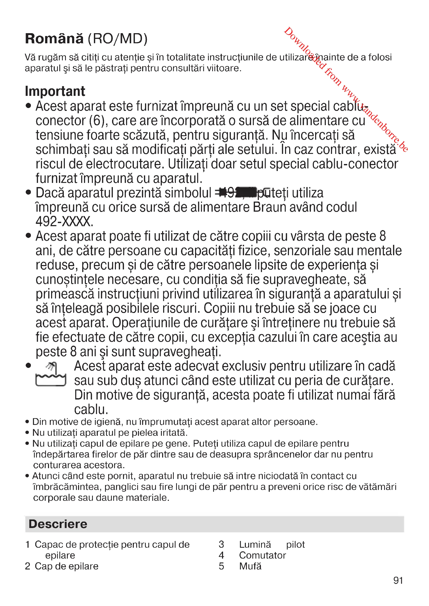 Dacă aparatul prezintă simbolul 492, îl puteţi utiliza împreună cu orice sursă de alimentare Braun având codul 492-XXXX.