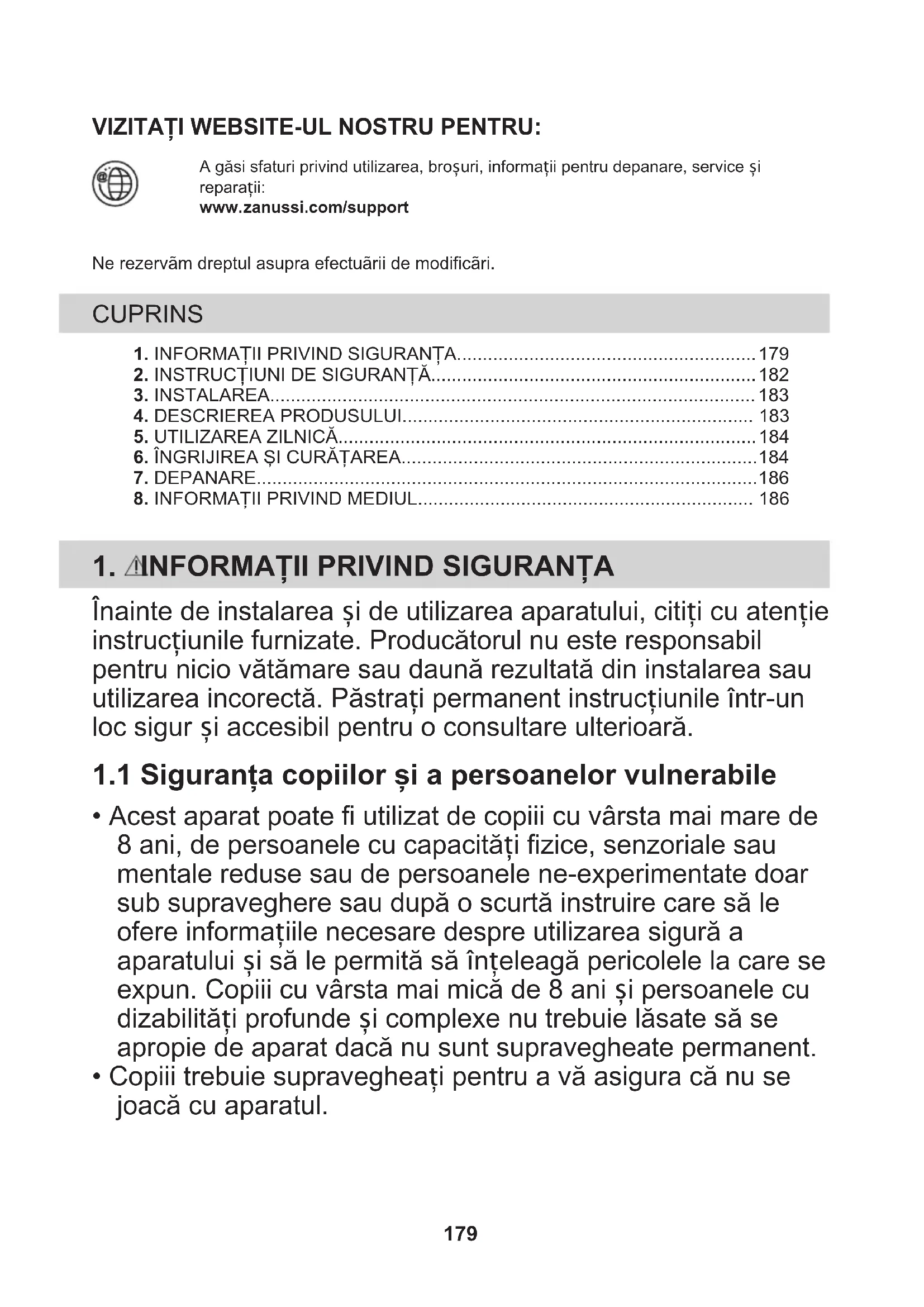 - Copiii trebuie supravegheați pentru a vă asigura că nu se joacă cu aparatul. 179• Nu lăsați ambalajele la îndemâna copiilor și aruncați-le conform reglementărilor.