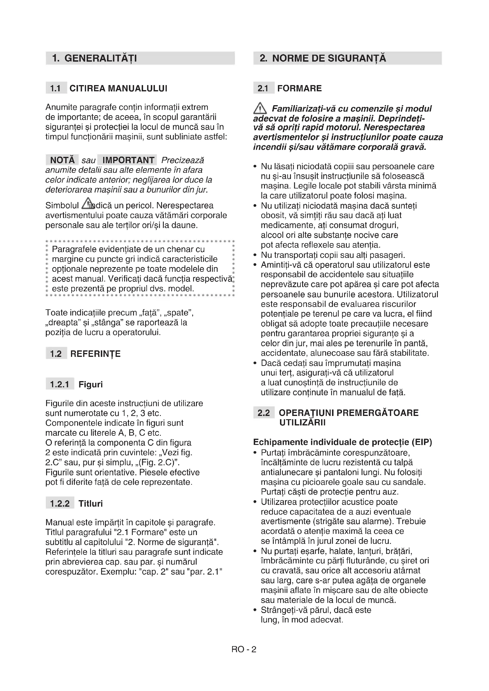 ATENŢIE!: ÎNAINTE DE A UTILIZA MAŞINA, CITIŢI CU ATENŢIE MANUALUL DE FAŢĂ. A se păstra pentru consultări ulterioare RORO - 2