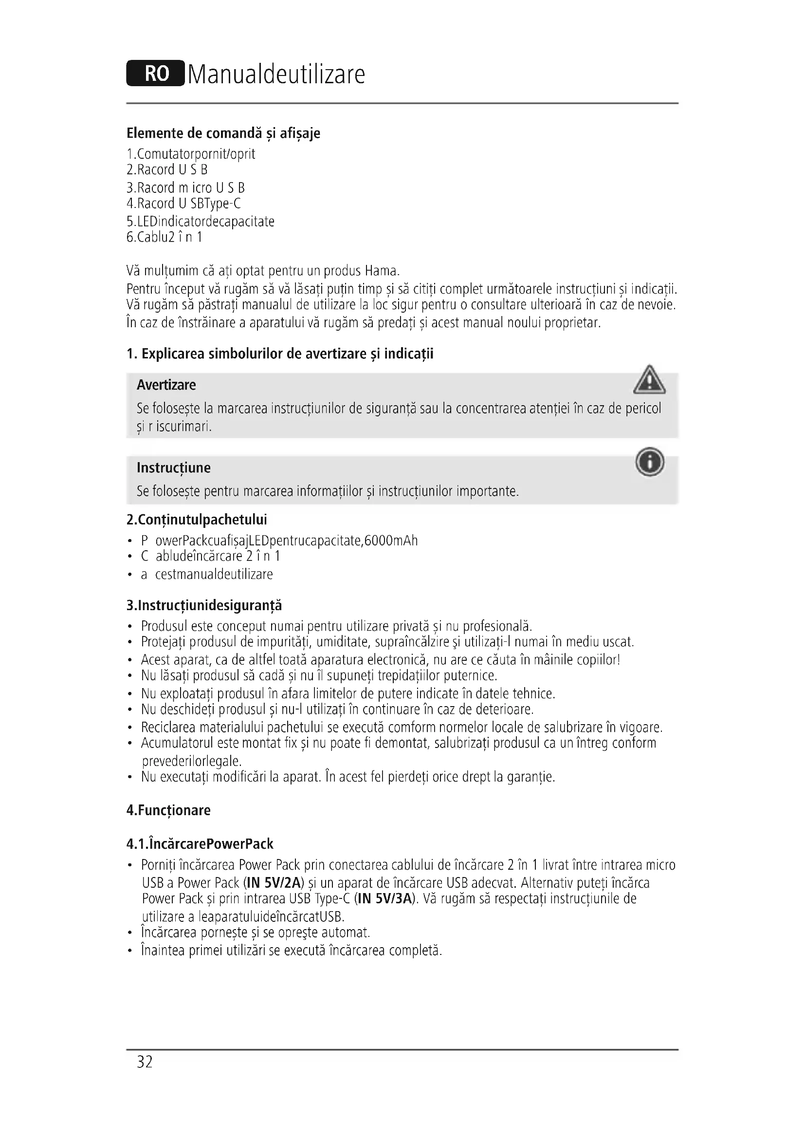 LED6S 00183361 - Baterie portabilă HAMA - Manual de utilizare gratuit
