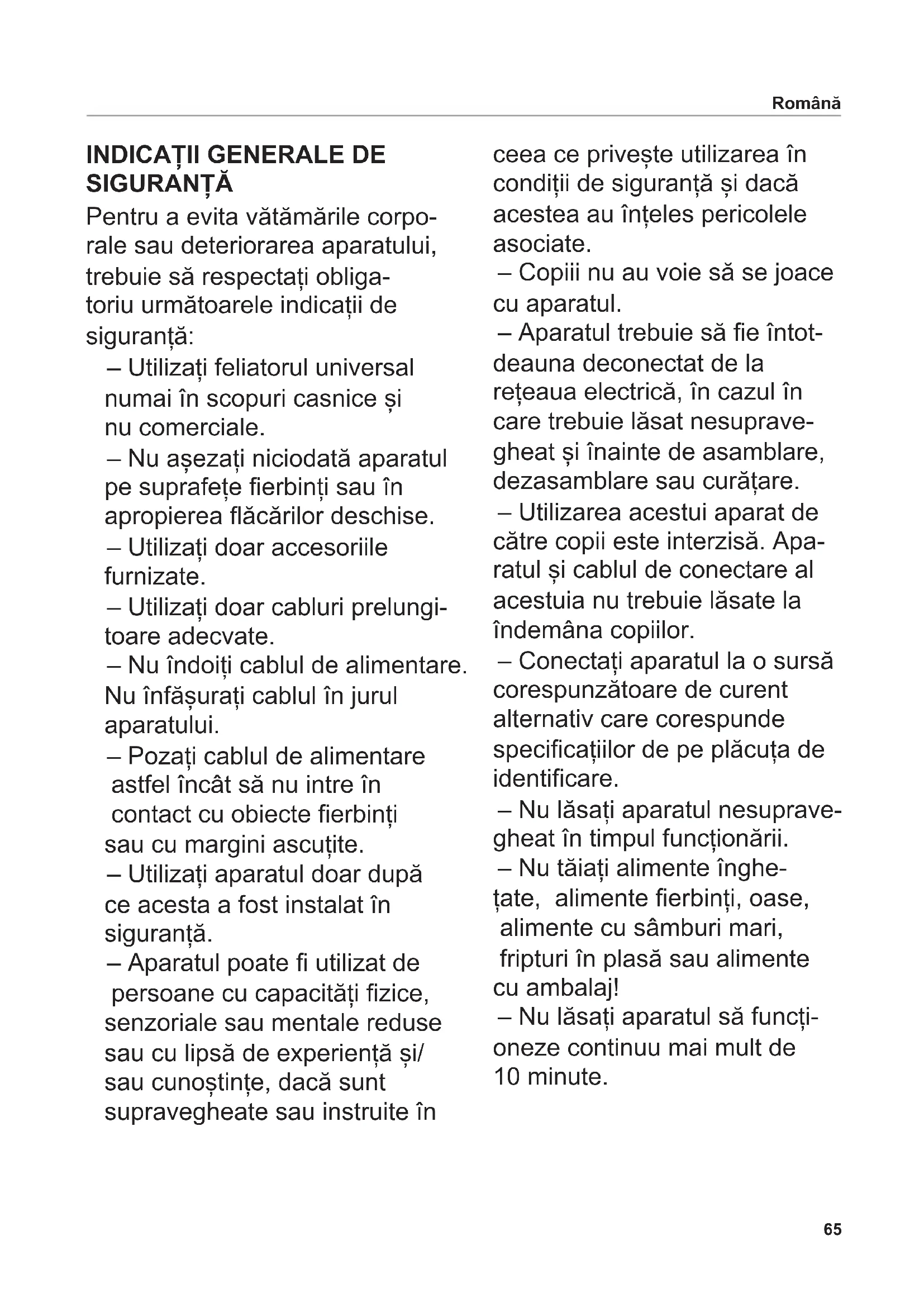 Instrucțiuni de utilizare ................................. 65