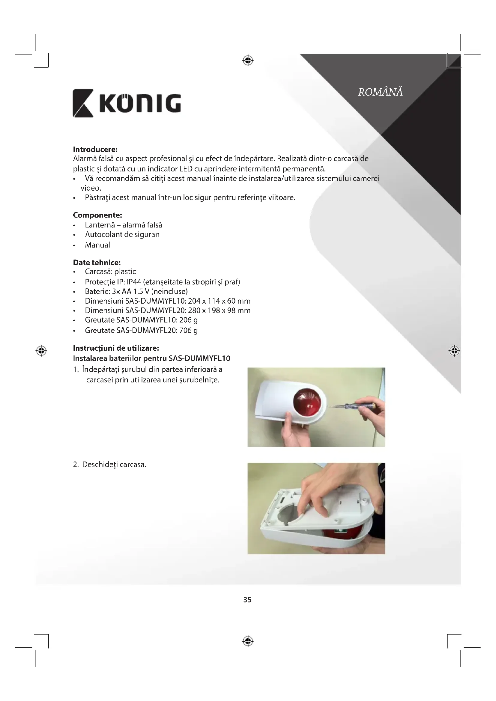 MANUAL DE UTILIZARE SASDUMMYFL20 KONIG