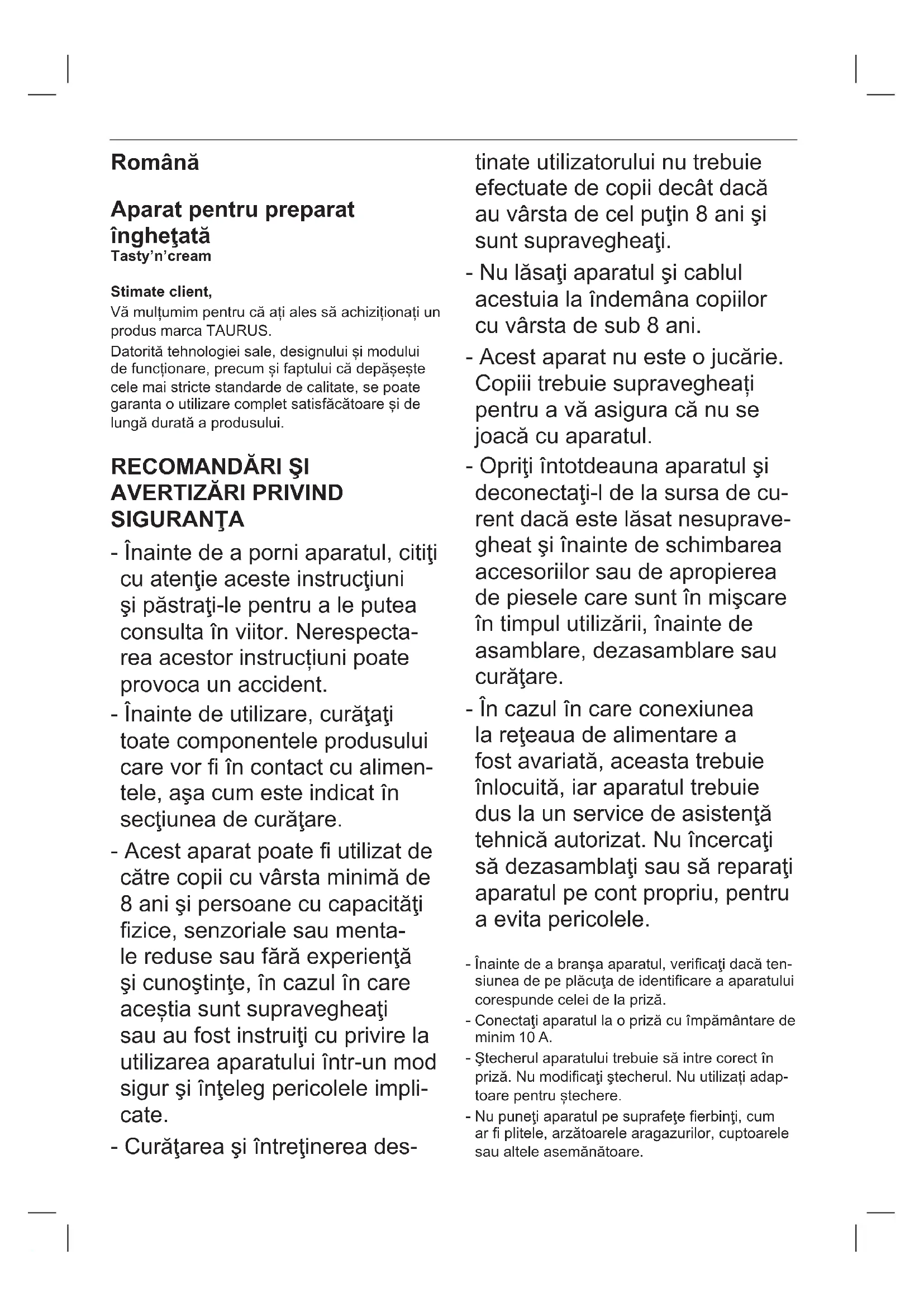 MANUAL DE UTILIZARE Tasty'N'Cream TAURUS