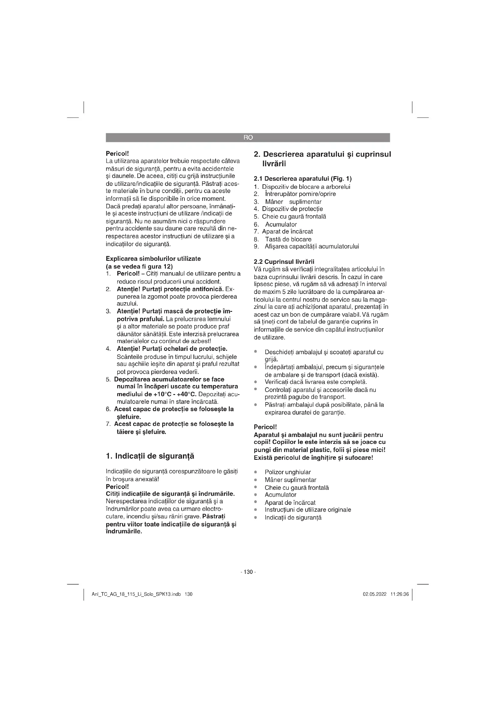 1. Indicaţii de siguranţă