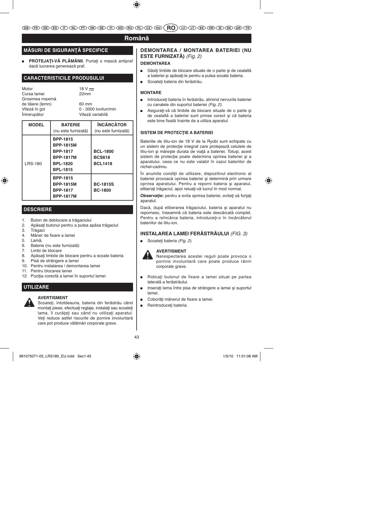 MANUAL DE UTILIZARE LRS180 RYOBI