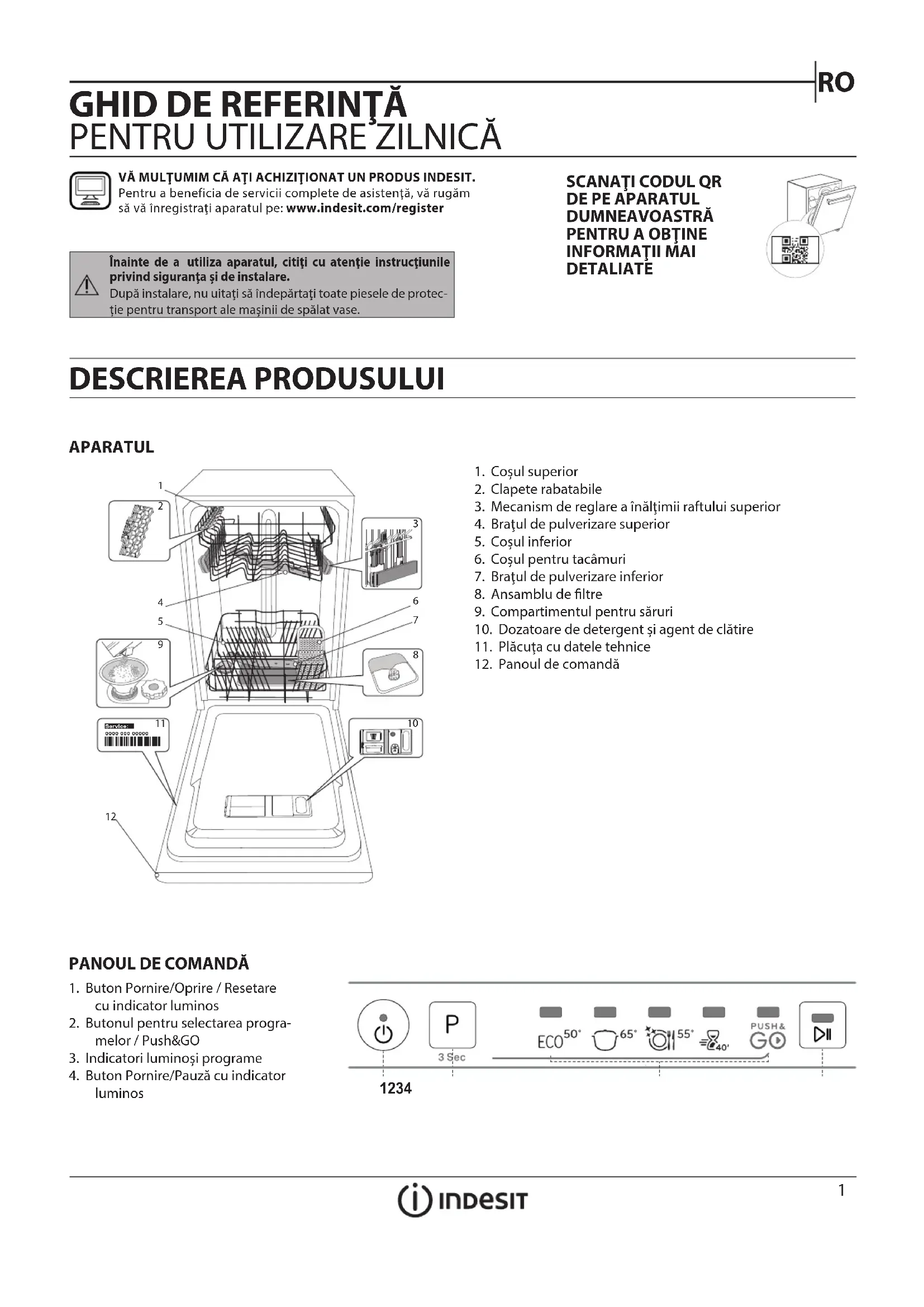 DESCRIEREA PRODUSULUI VĂ MULŢUMIM CĂ AŢI ACHIZIŢIONAT UN PRODUS INDESIT. Pentru a beneficia de servicii complete de asistenţă, vă rugăm să vă înregistraţi aparatul pe: www.indesit.com/register
