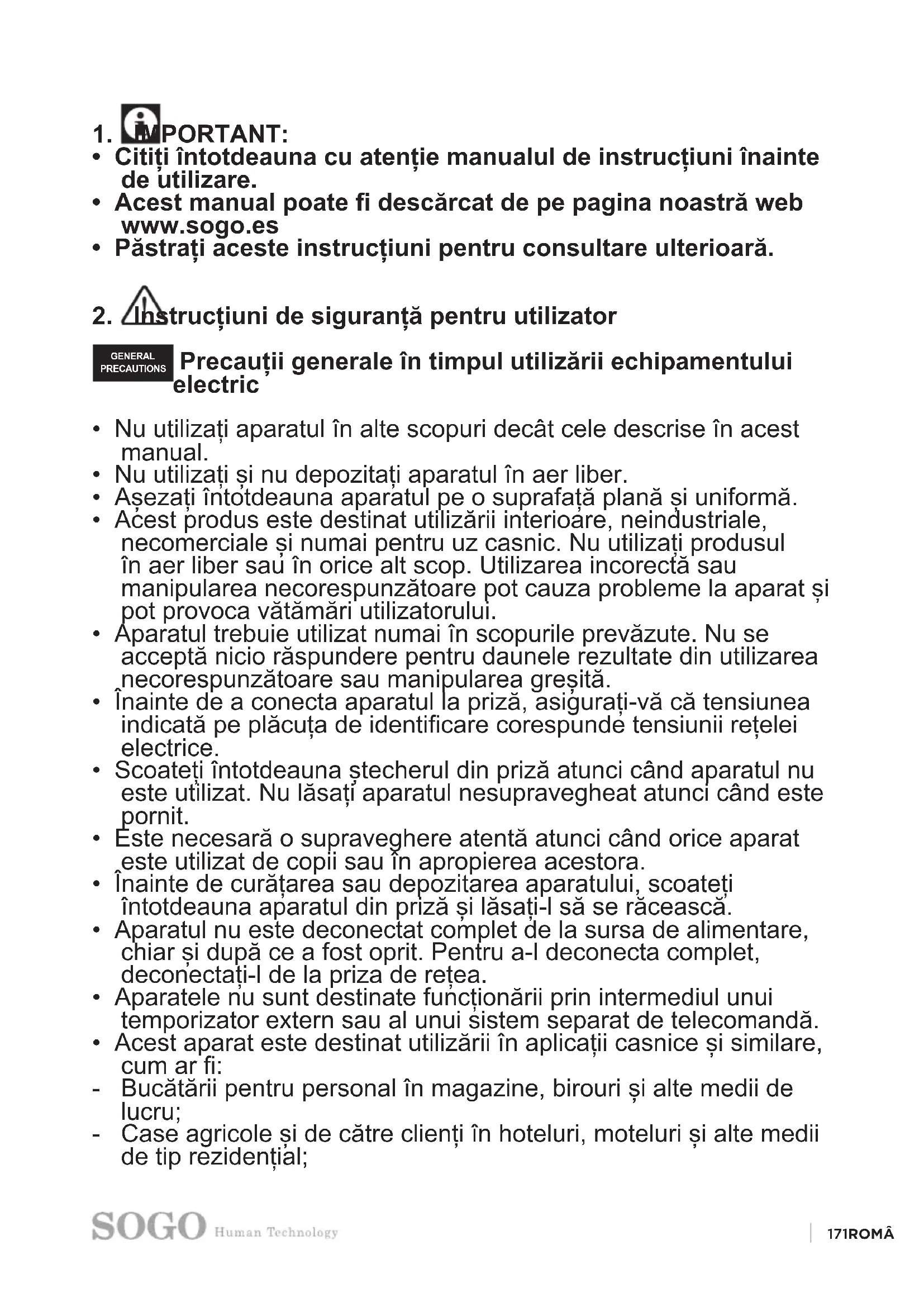 - Acest manual poate descărcat de pe pagina noastră web www.sogo.es