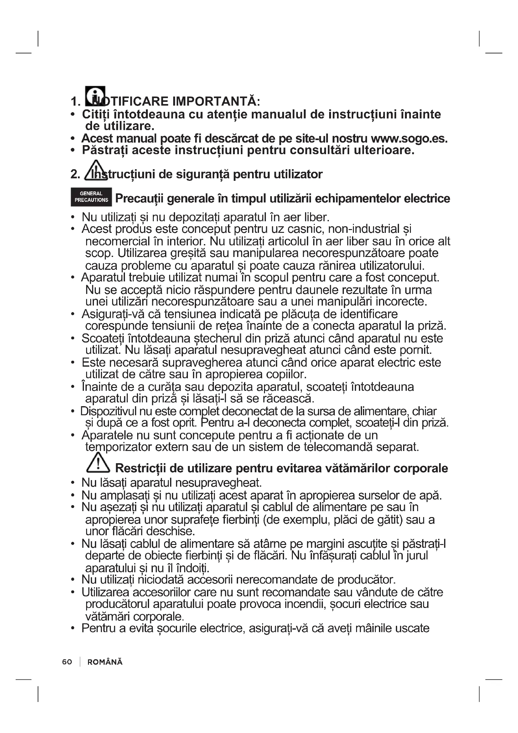 2. Instrucțiuni de siguranță pentru utilizator