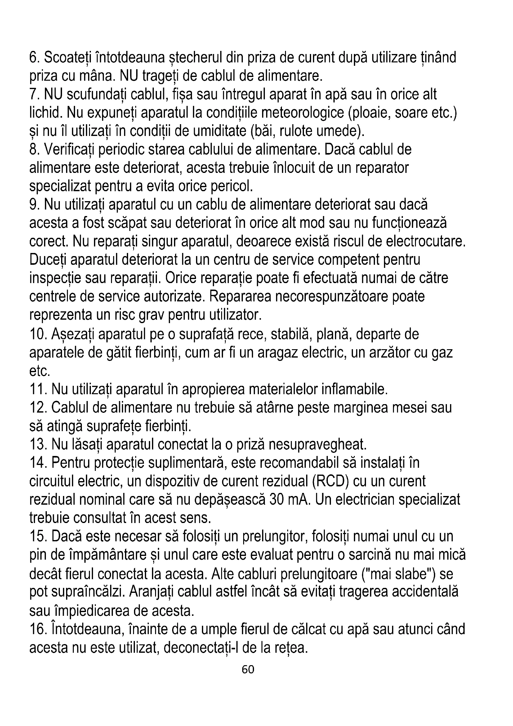 16. Întotdeauna, înainte de a umple fierul de călcat cu apă sau atunci când