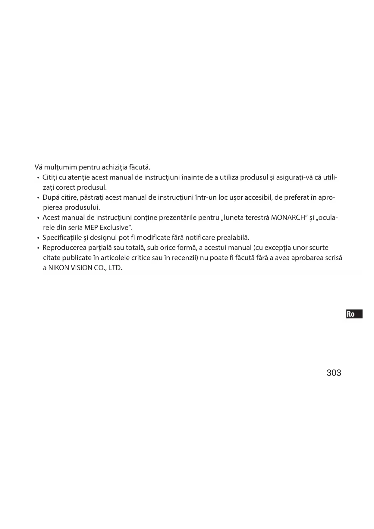 MANUAL DE UTILIZARE Monarch ED NIKON