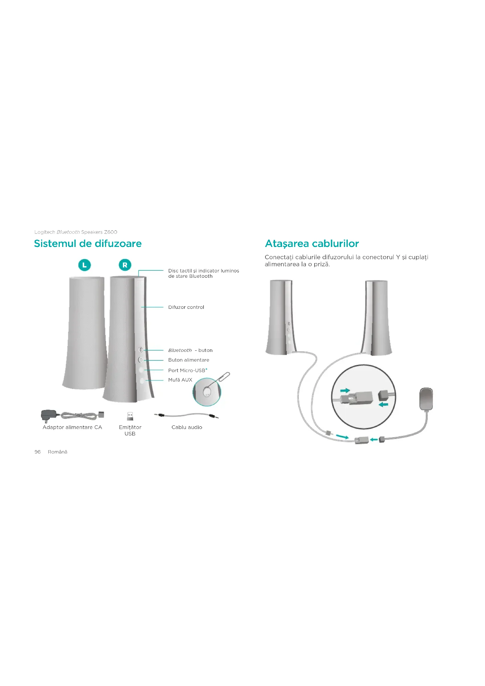 Descărcați instrucțiunile pentru Difuzor în format PDF gratuit! Găsiți manualul dvs. Z600 - LOGITECH și luați din nou în mână dispozitivul dvs. electronic. Pe această pagină sunt publicate toate documentele necesare pentru utilizarea dispozitivului dvs. Z600 mărcii LOGITECH.
