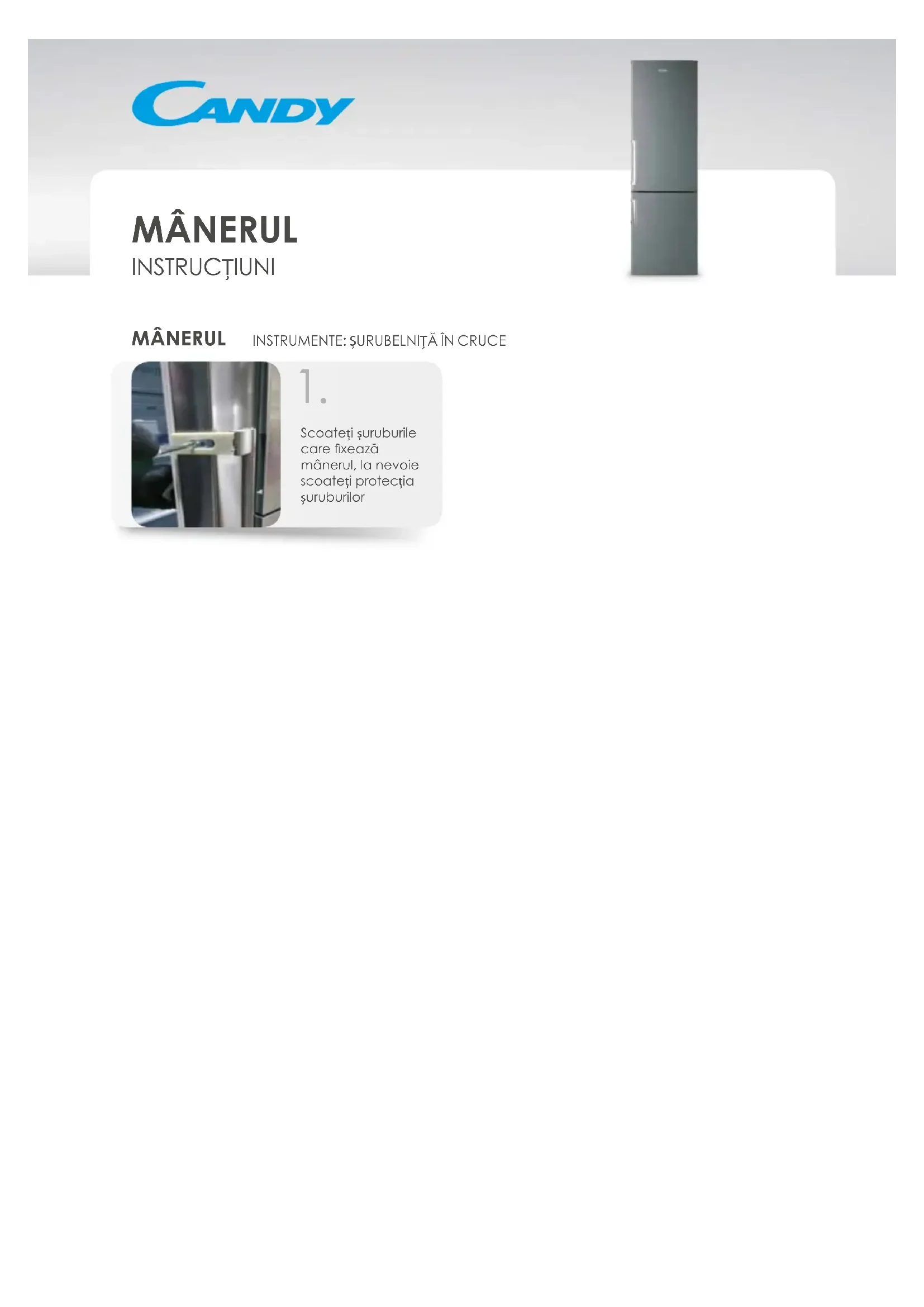 MÂNERUL INSTRUCȚIUNI MÂNERUL INSTRUMENTE: ȘURUBELNIȚĂ ÎN CRUCEDeschideți ușaTrageți garnitura în afară începând de la colț Scoateți garnitura de pe tot cadrul