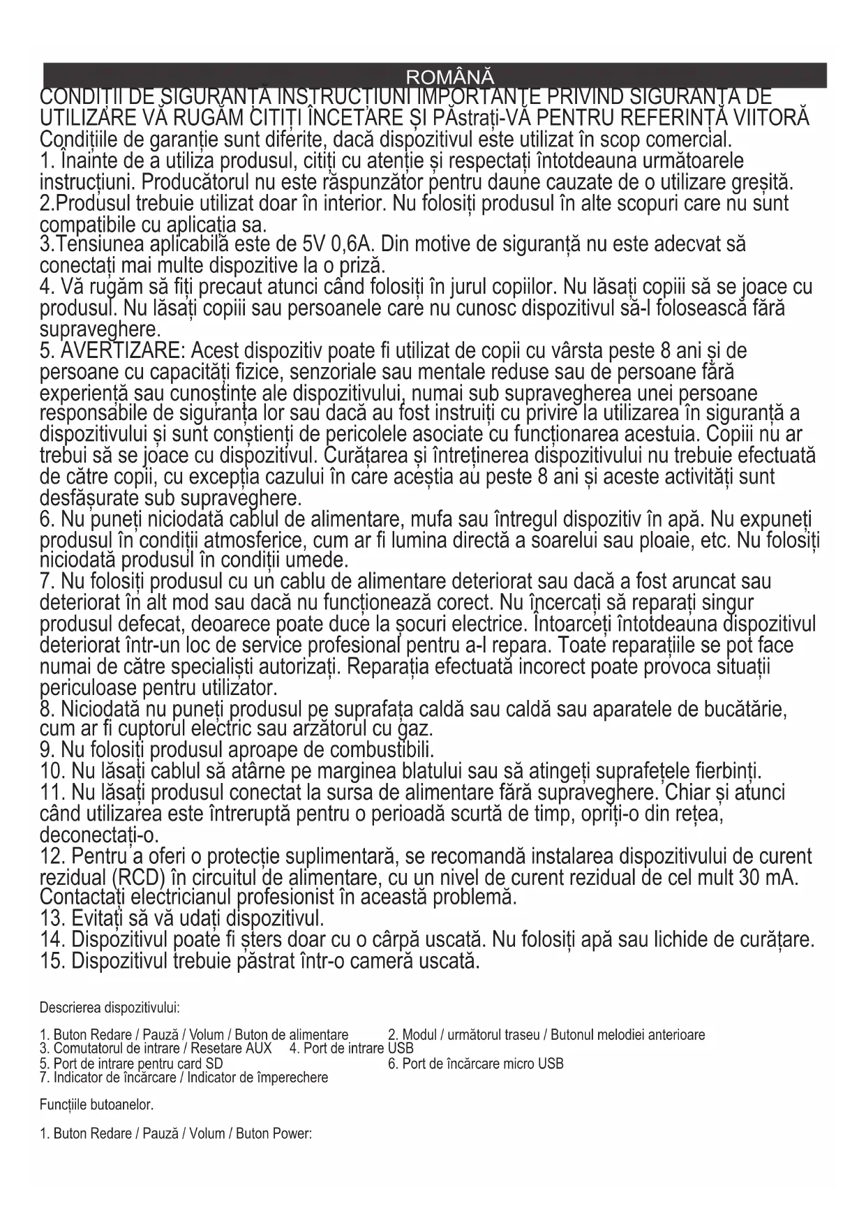 5. AVERTIZARE: Acest dispozitiv poate fi utilizat de copii cu vârsta peste 8 ani și de