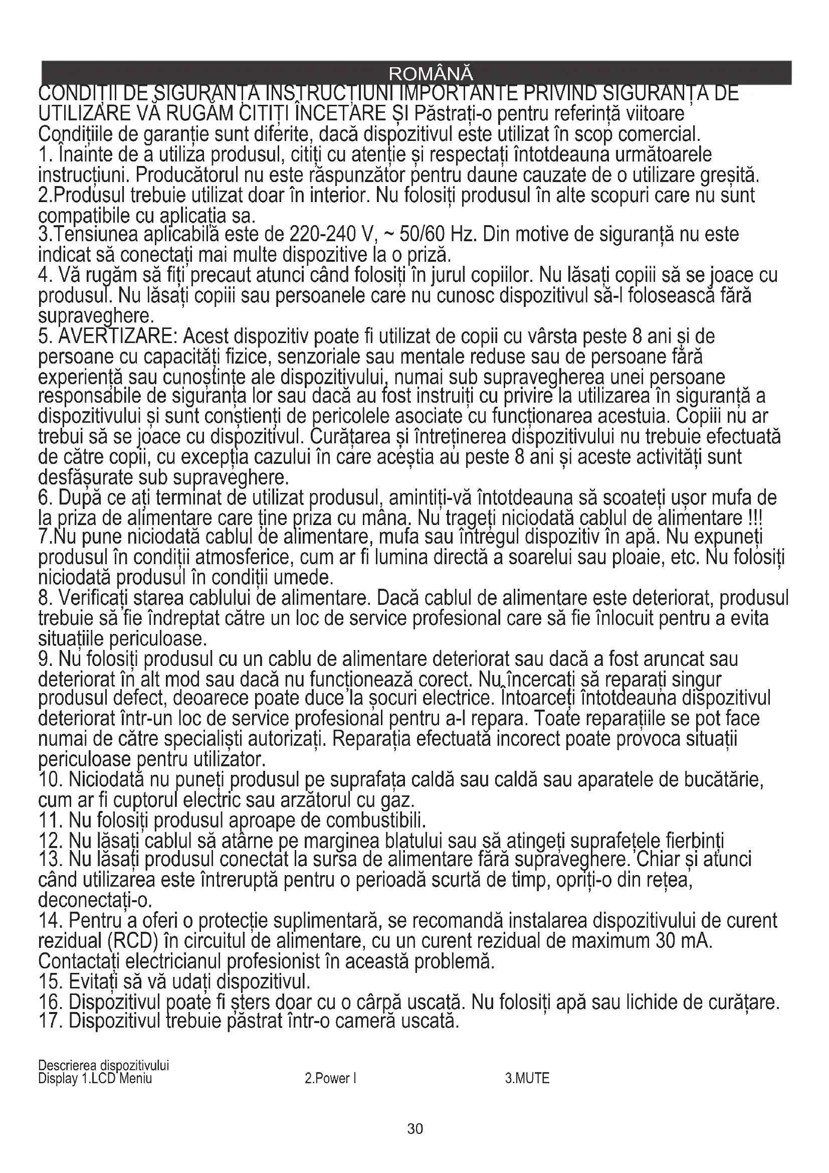 5. AVERTIZARE: Acest dispozitiv poate fi utilizat de copii cu vârsta peste 8 ani și de