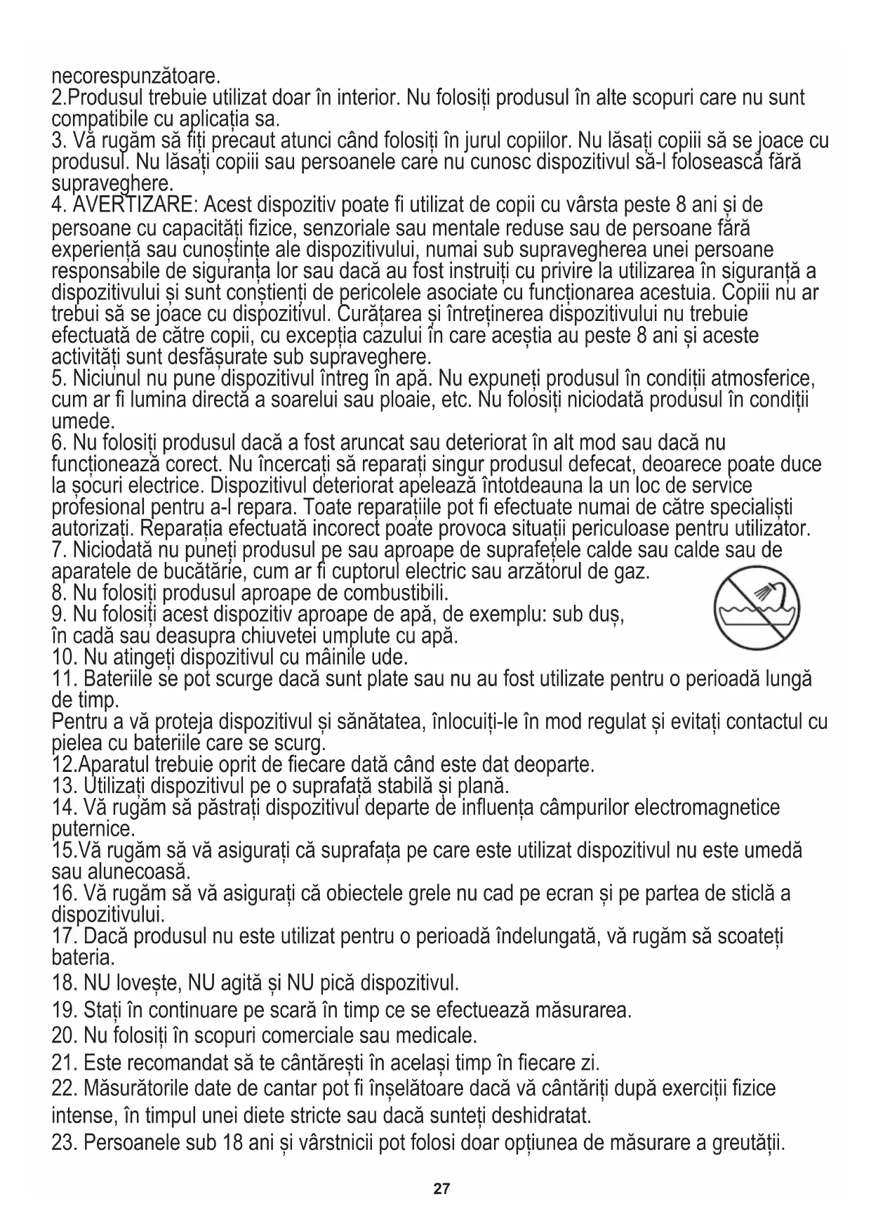 23. Persoanele sub 18 ani și vârstnicii pot folosi doar opțiunea de măsurare a greutății.