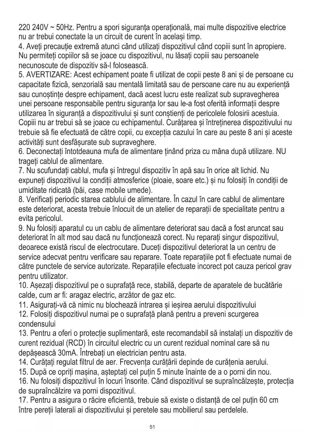 capacitate fizică, senzorială sau mentală limitată sau de persoane care nu au experiență sau cunoștințe despre echipament, dacă acest lucru este realizat sub supravegherea unei persoane responsabile pentru siguranța lor sau le-a fost oferită informații despre utilizarea în siguranță a dispozitivului și sunt conștienți de pericolele folosirii acestuia. Copiii nu ar trebui să se joace cu echipamentul. Curățarea și întreținerea dispozitivului nu trebuie să fie efectuată de către copii, cu excepția cazului în care au peste 8 ani și aceste activități sunt desfășurate sub supraveghere.