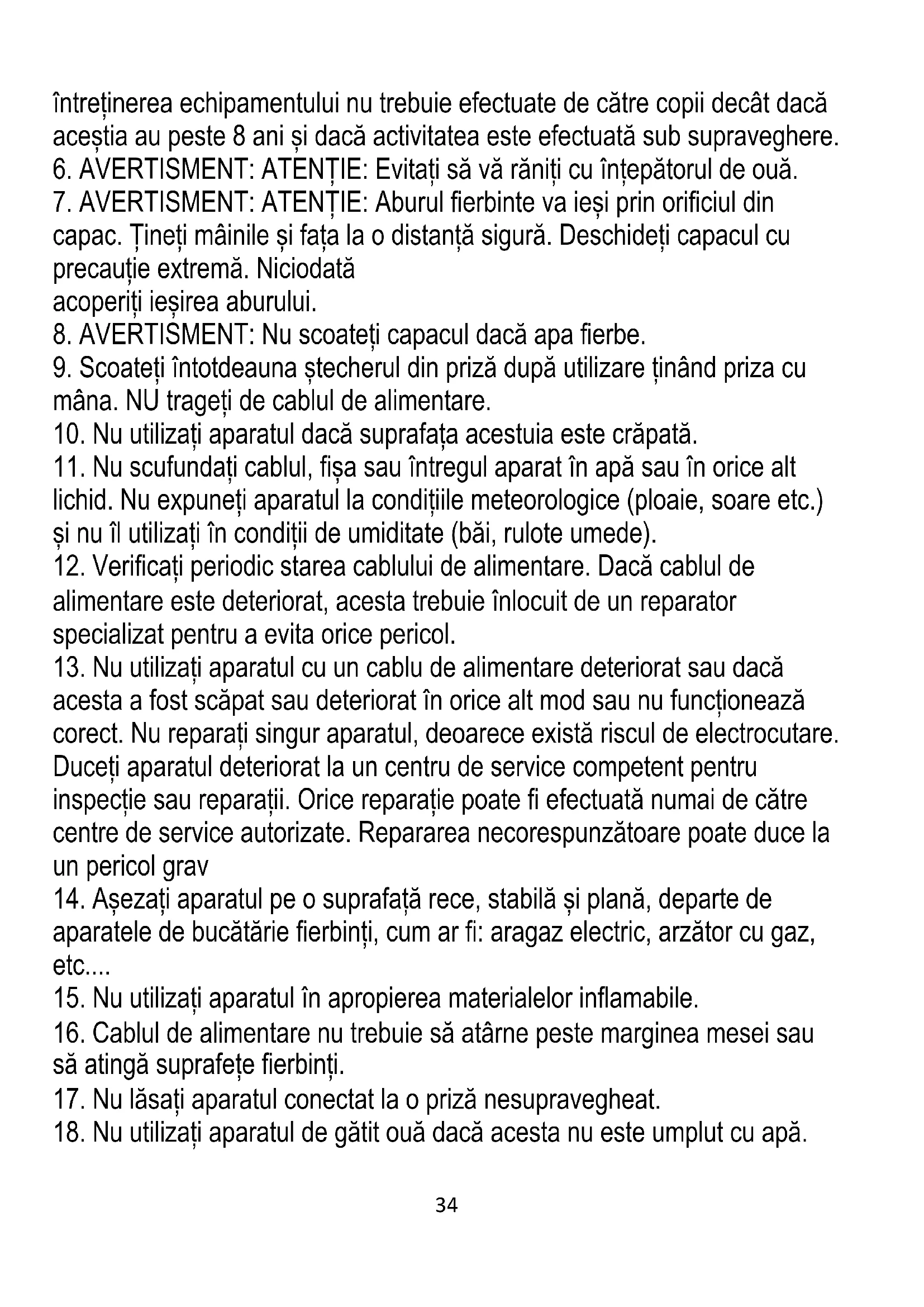 18. Nu utilizați aparatul de gătit ouă dacă acesta nu este umplut cu apă.35