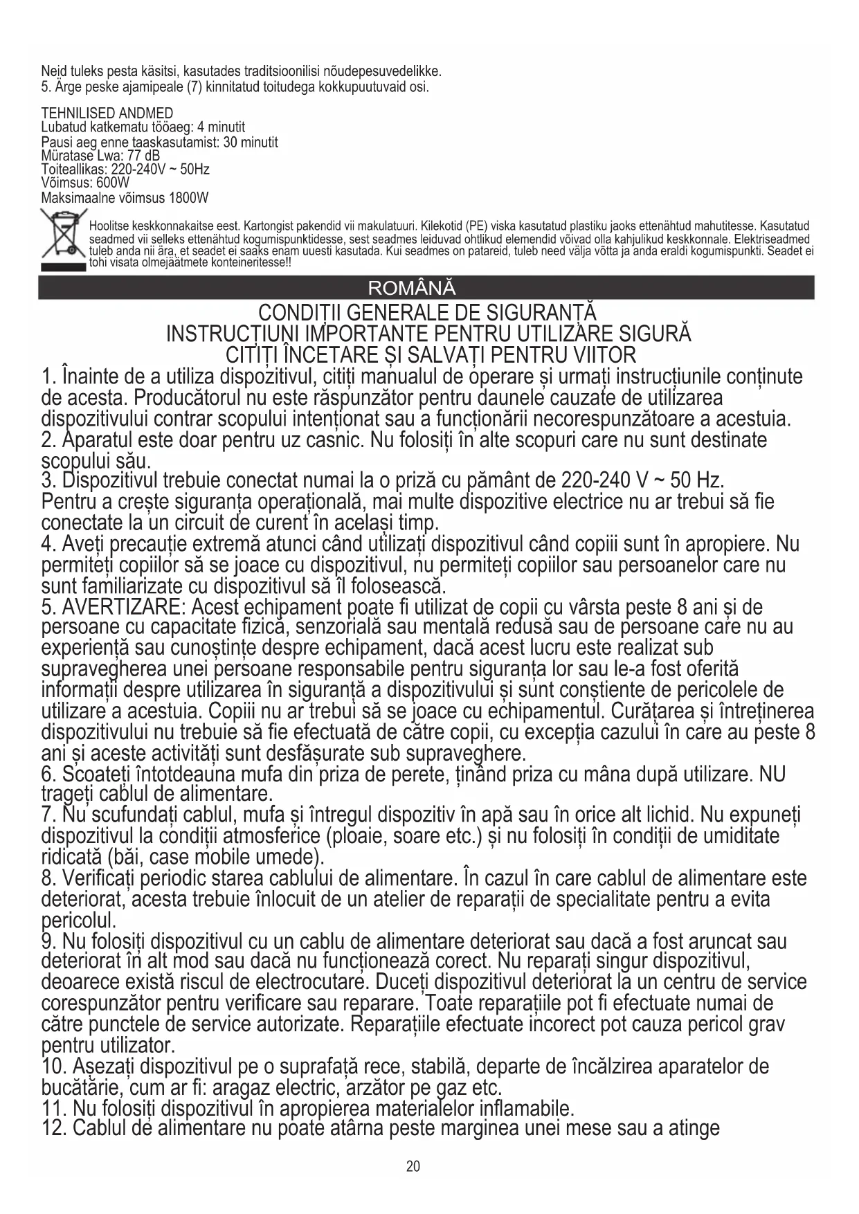 5. AVERTIZARE: Acest echipament poate fi utilizat de copii cu vârsta peste 8 ani și de
