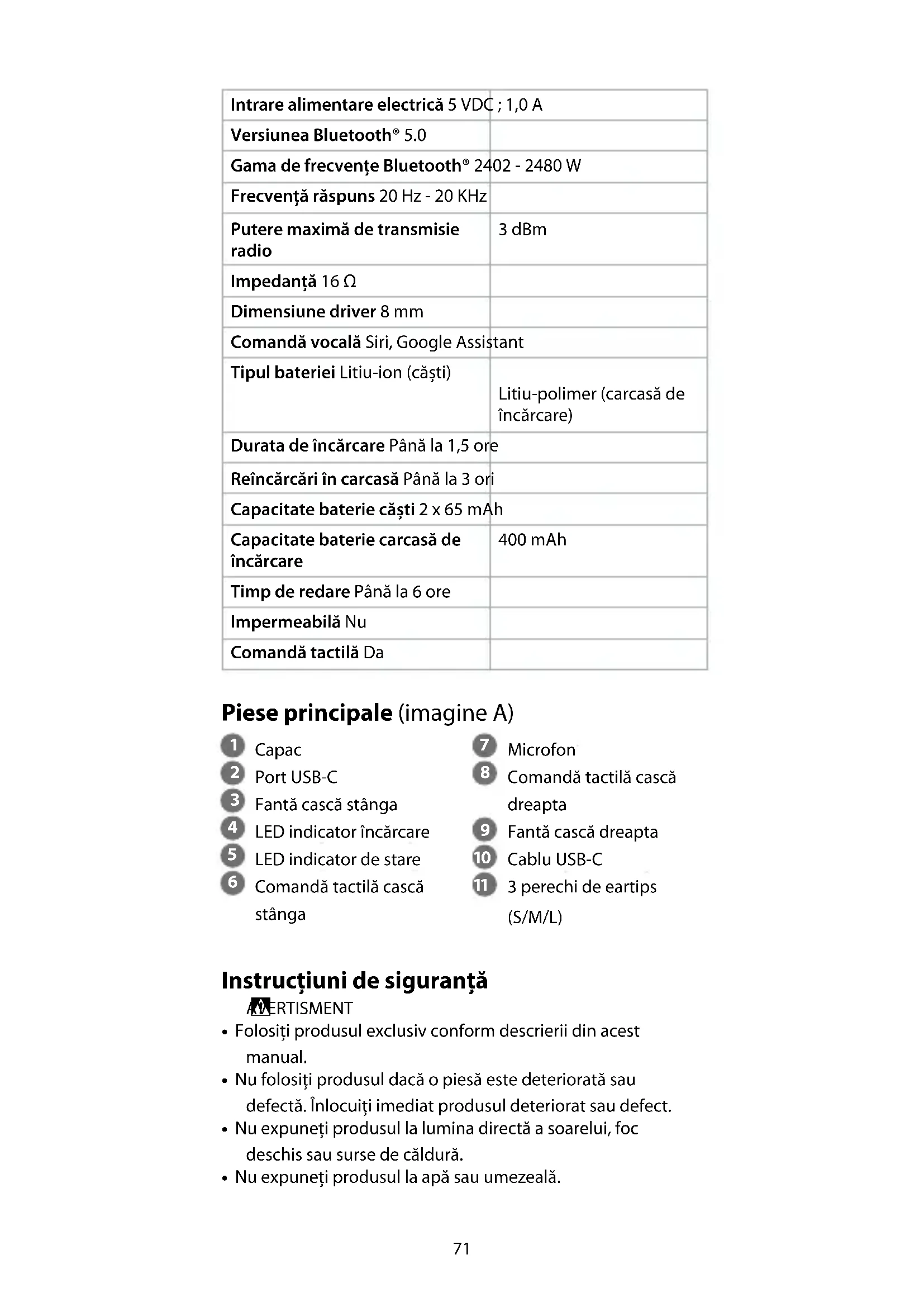 - Folosiți produsul exclusiv conform descrierii din acest manual. Asocierea căștilor cu o sursă audio Bluetooth
