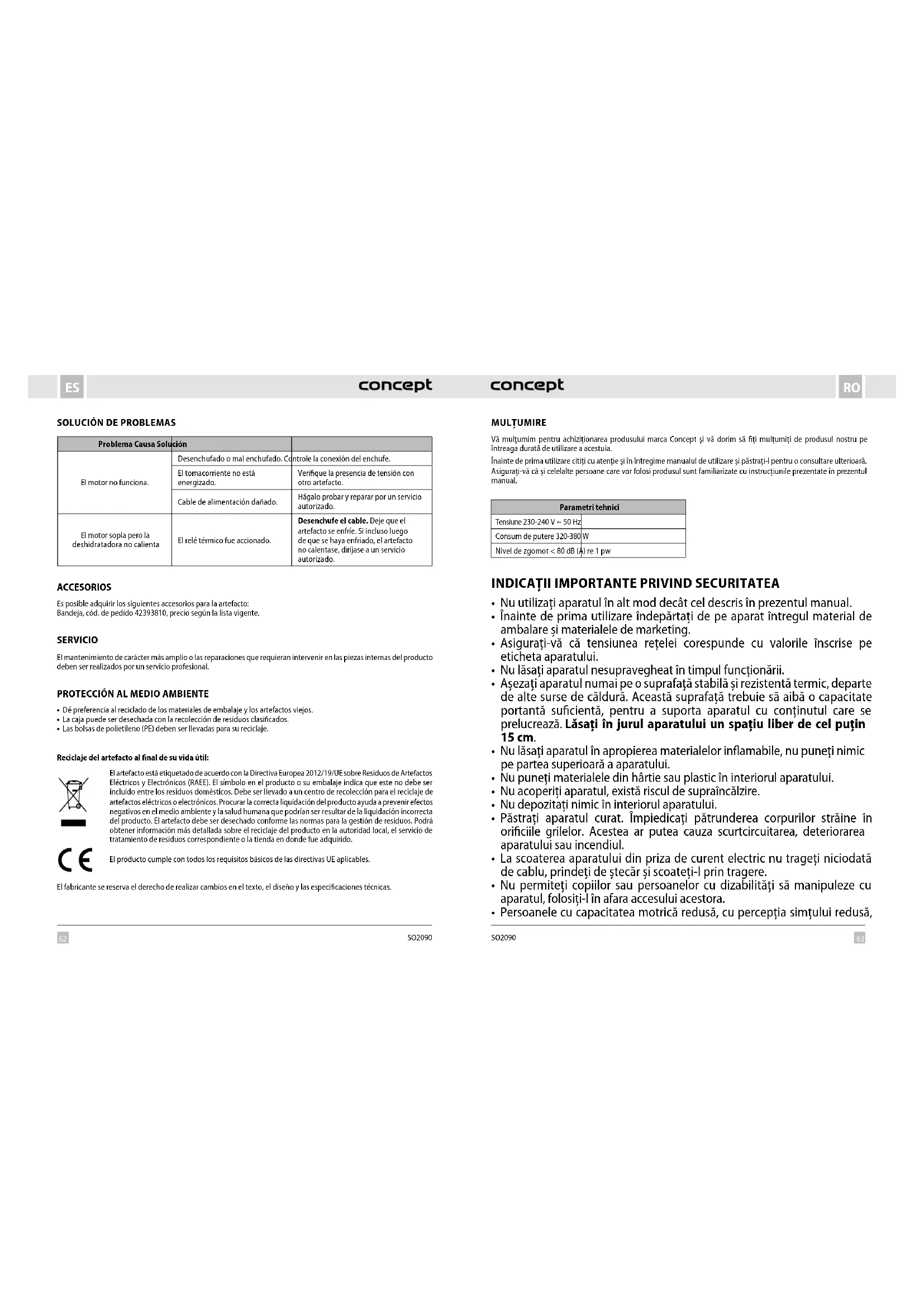 MANUAL DE UTILIZARE SO2090 Concept