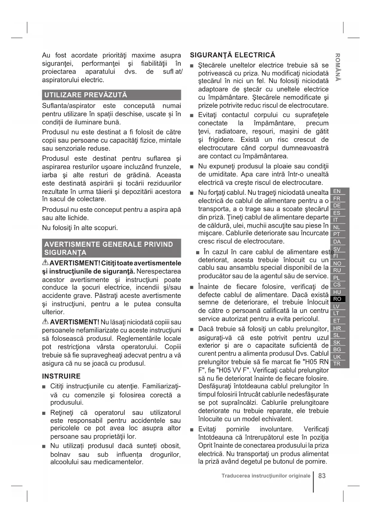 Az eredeti útmutató fordításaAu fost acordate priorităţi maxime asupra siguranţei, performanţei şi fi abilităţii în proiectarea aparatului dvs. de sufl at/ aspiratorului electric.