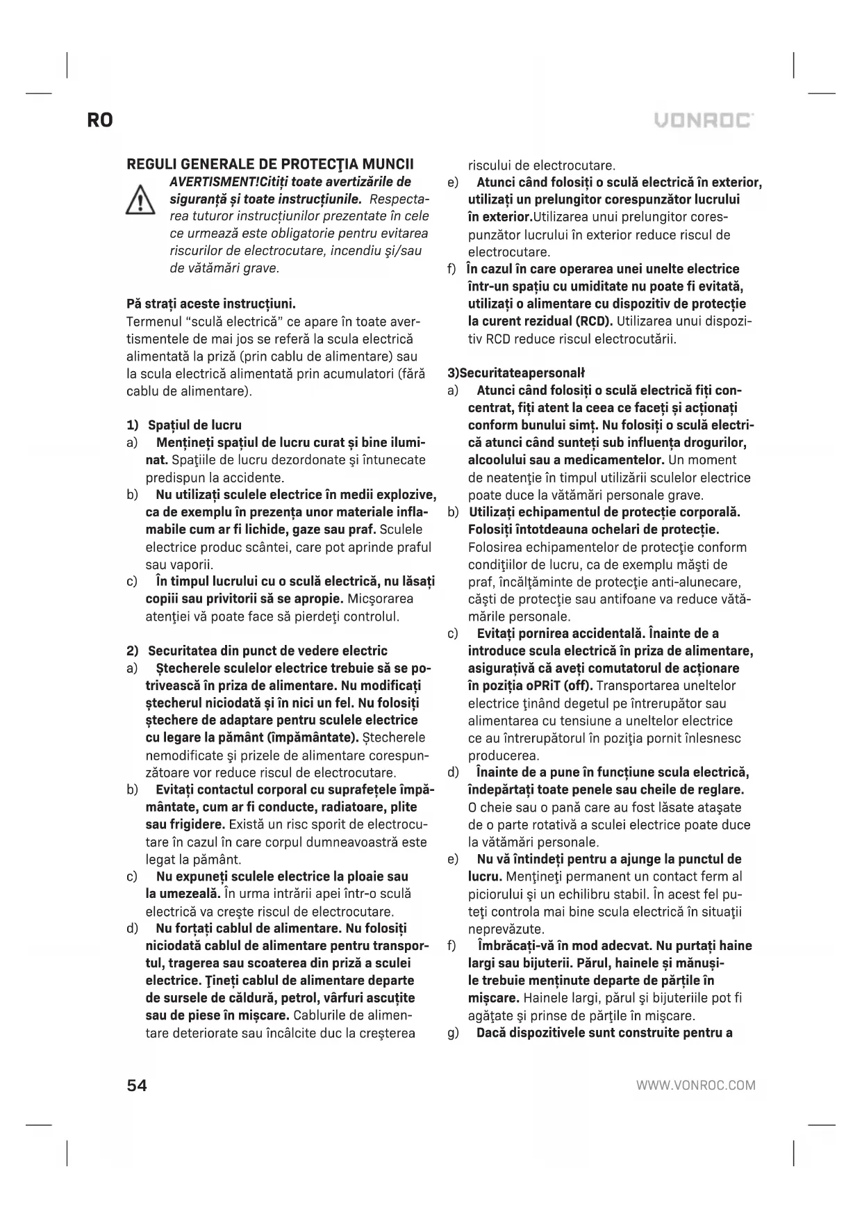 MANUAL DE UTILIZARE RH503AC Vonroc