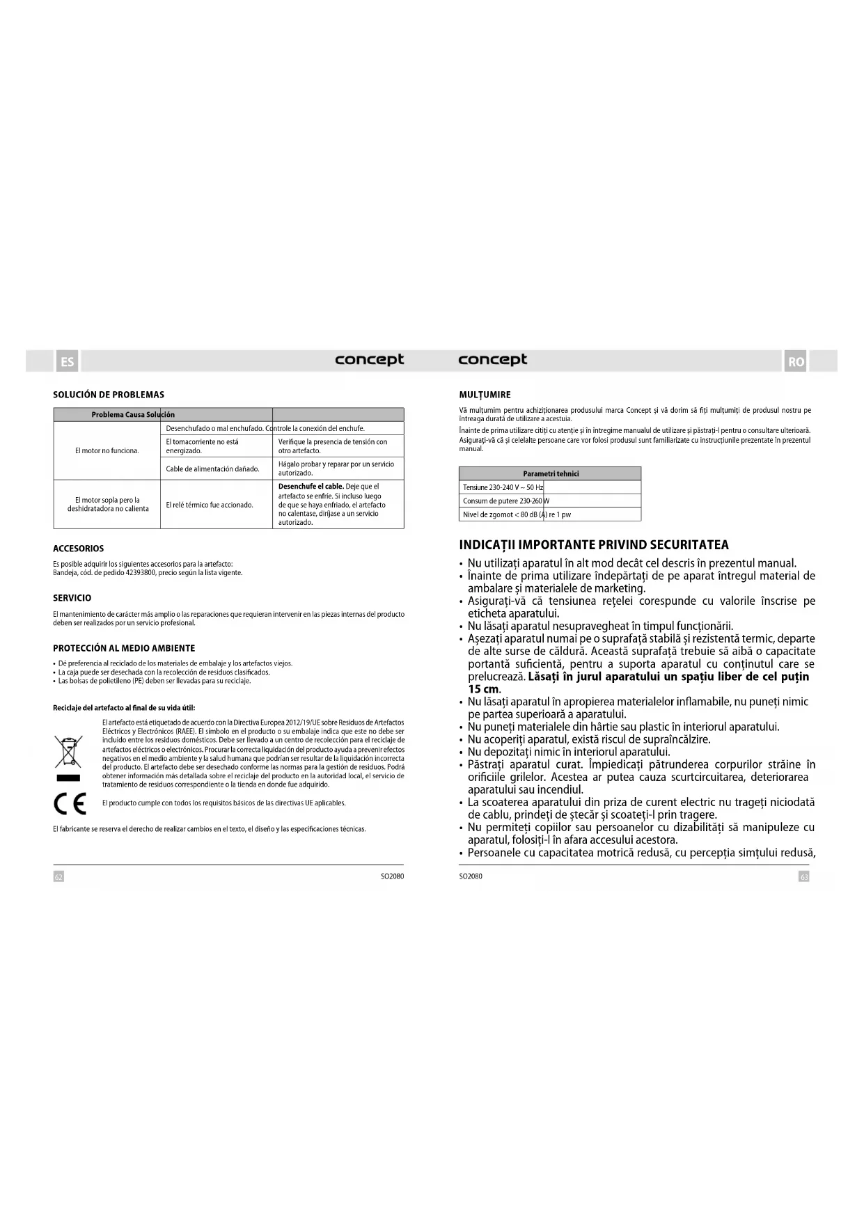 SO2080 - Deshidrator alimentar Concept - Manual de utilizare gratuit