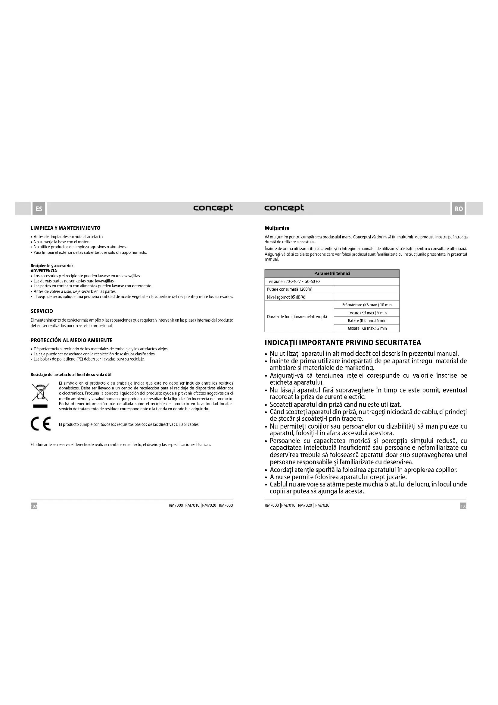 Element RM7020 - Robot de bucătărie Concept - Manual de utilizare gratuit