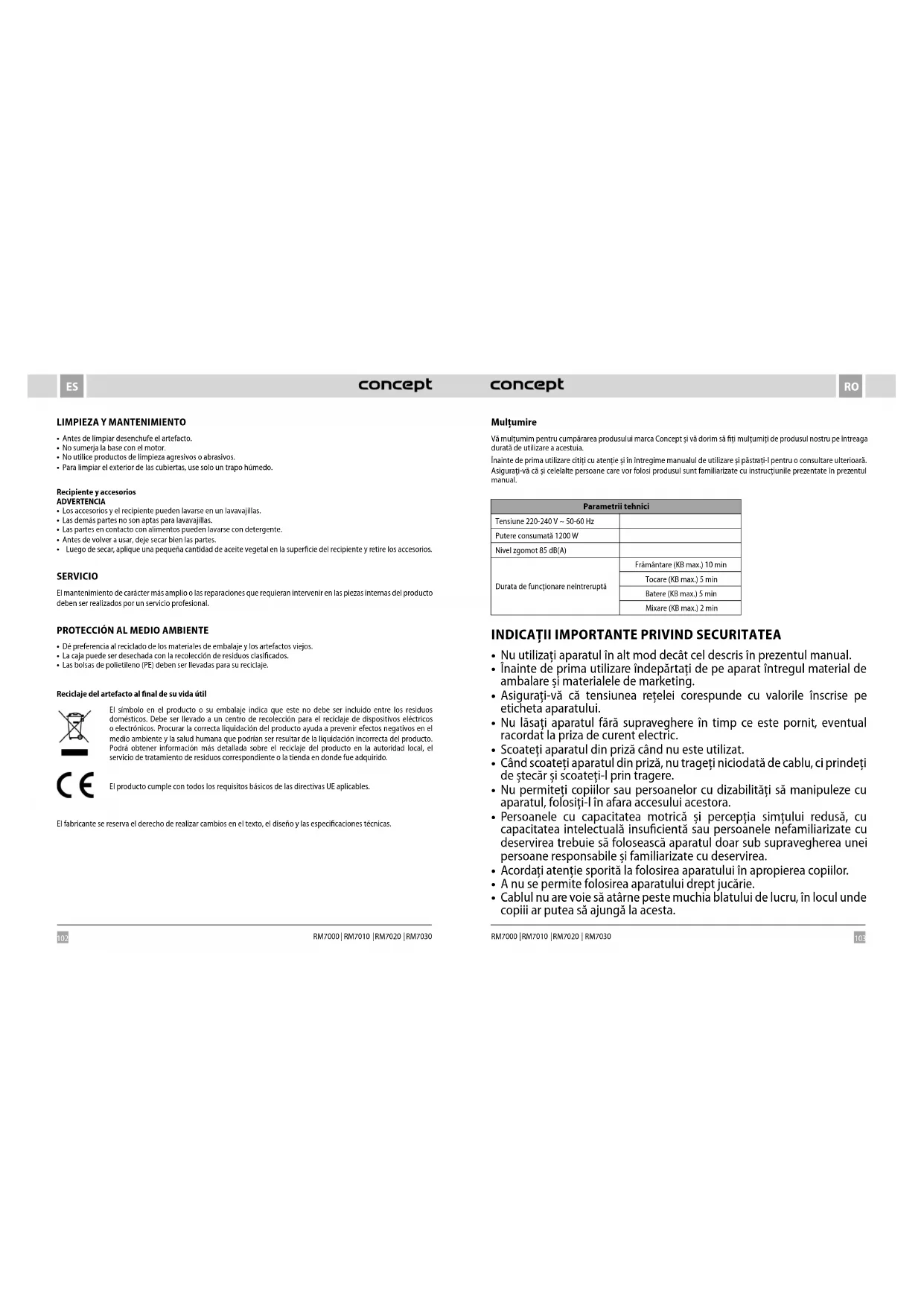Element RM7010 - Robot de bucătărie Concept - Manual de utilizare gratuit
