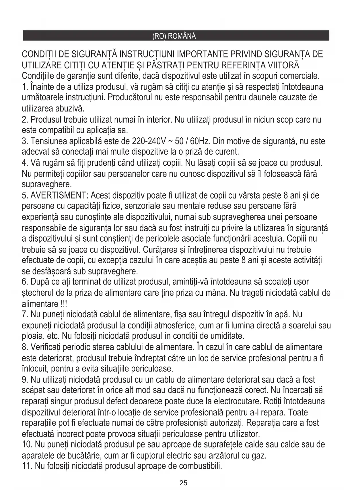 5. AVERTISMENT: Acest dispozitiv poate fi utilizat de copii cu vârsta peste 8 ani și de
