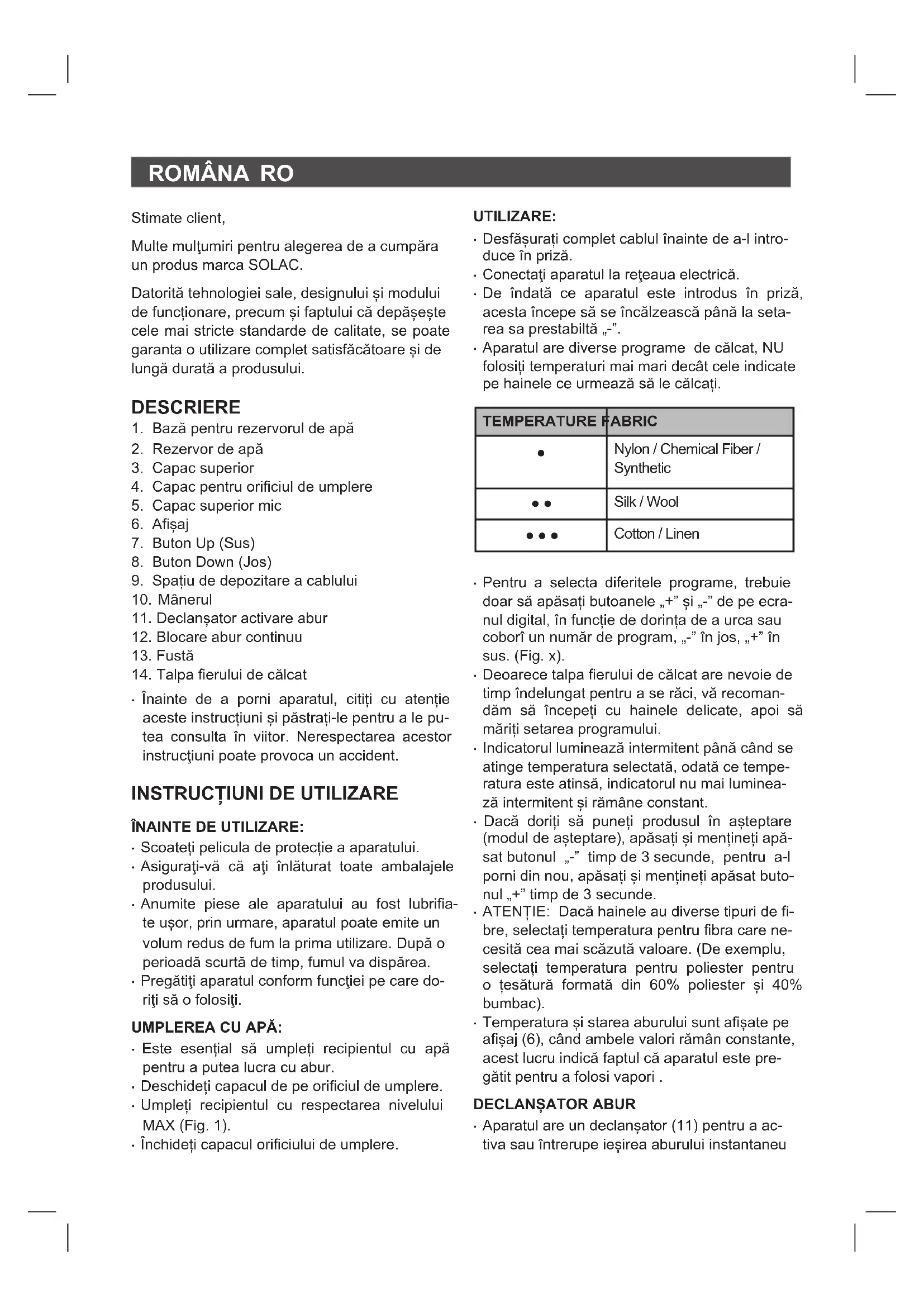 - Aparatul are diverse programe de călcat, NU folosiți temperaturi mai mari decât cele indicate pe hainele ce urmează să le călcați.
