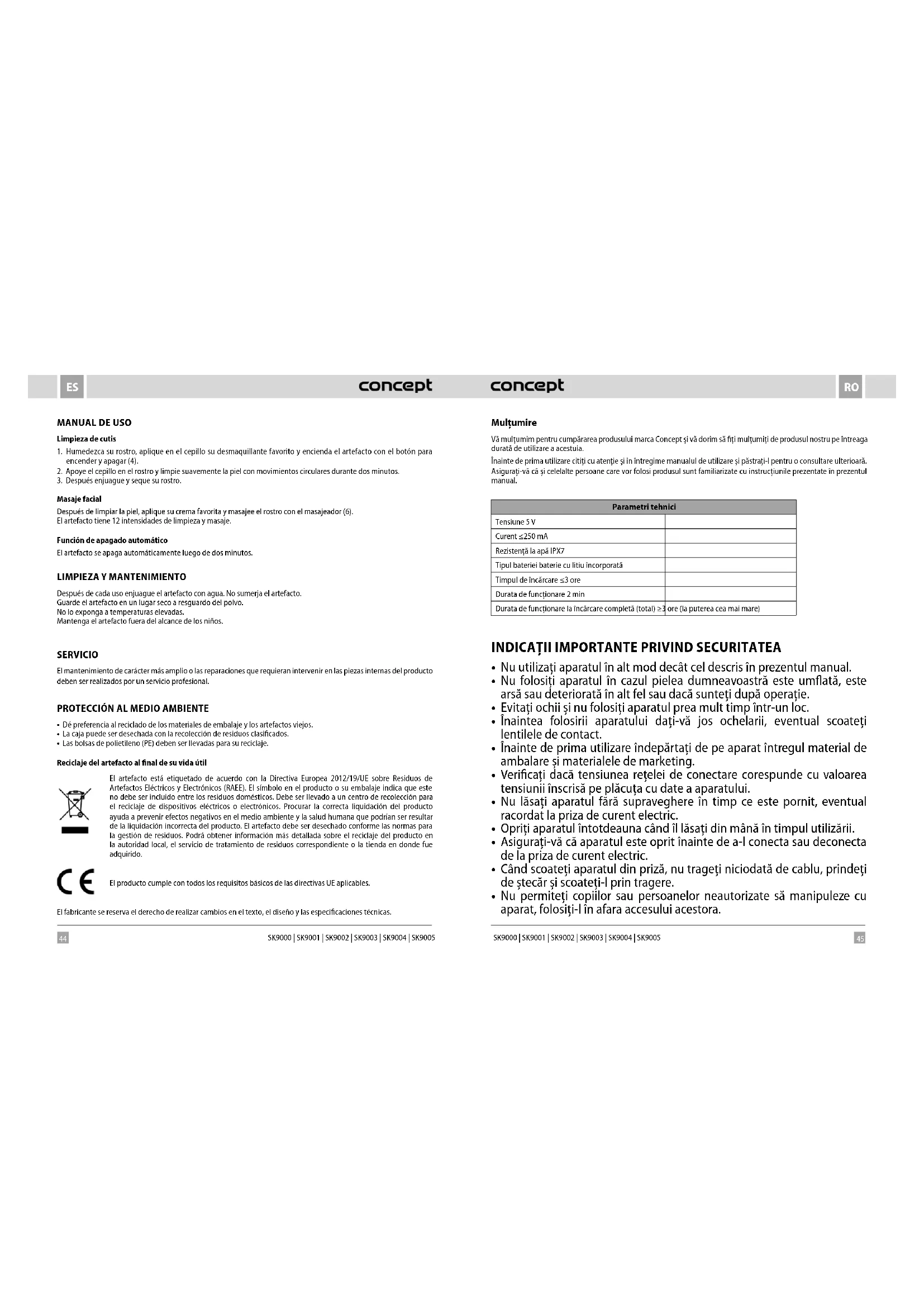 Sonivibe SK9005 - Curățare față Concept - Manual de utilizare gratuit