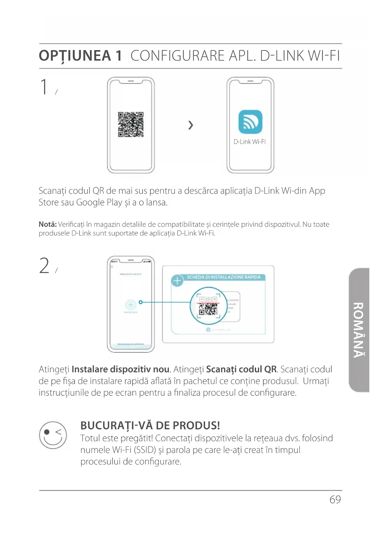 BUCURAȚI-VĂ DE PRODUS! Totul este pregătit! Conectaţi dispozitivele la reţeaua dvs. folosind numele Wi-Fi (SSID) și parola pe care le-aţi creat în timpul procesului de configurare.