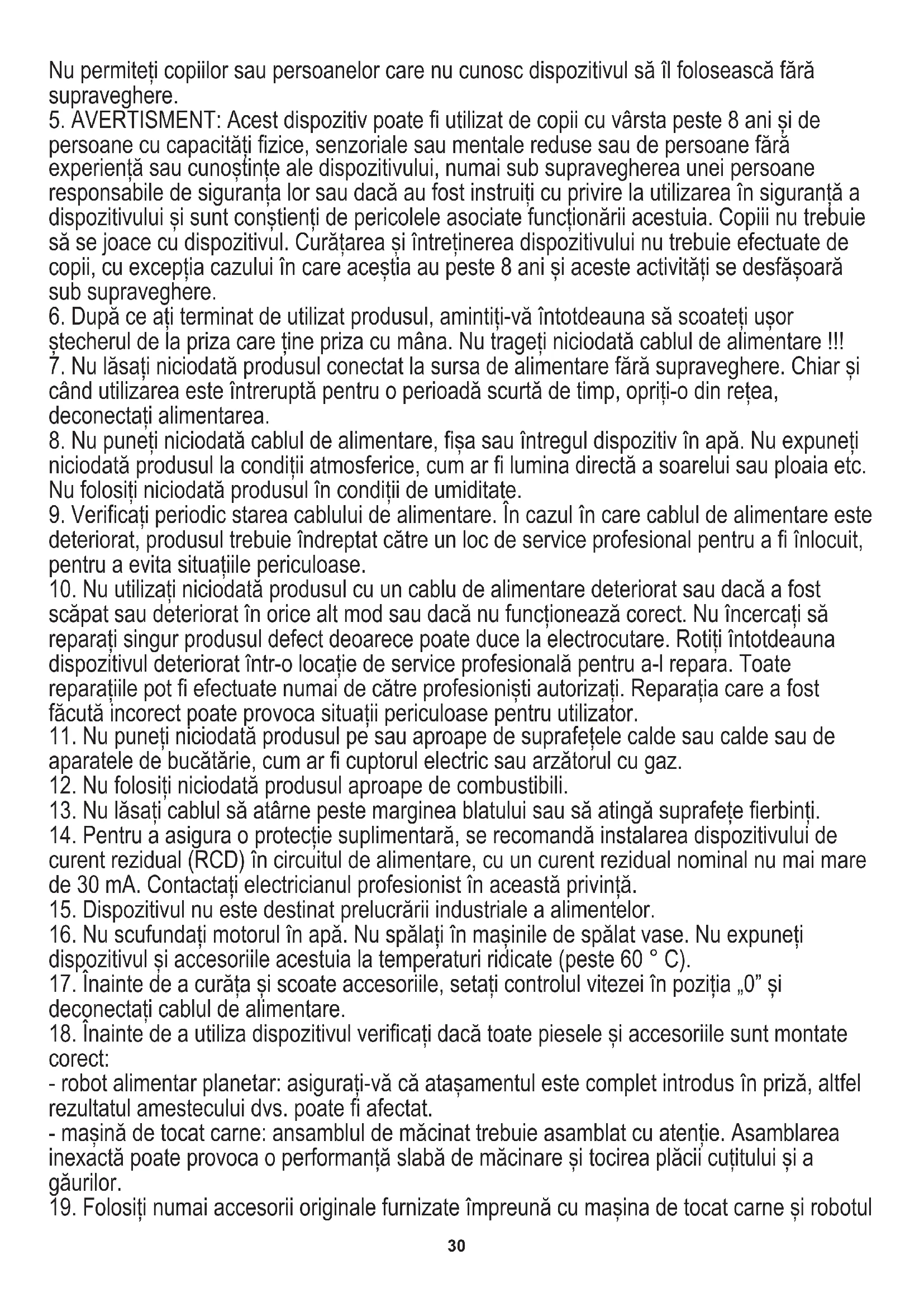 19. Folosiți numai accesorii originale furnizate împreună cu mașina de tocat carne și robotul31