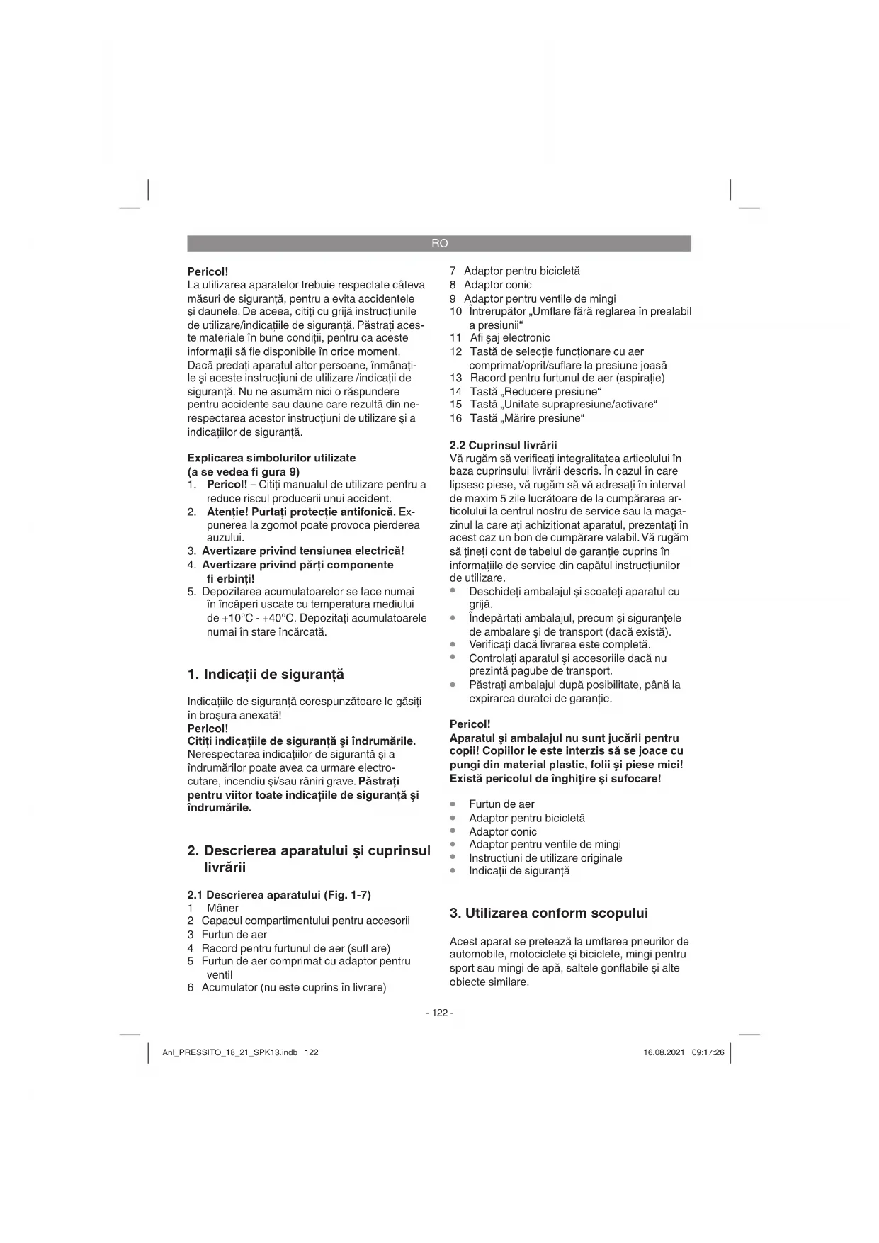 Acest aparat se preteazà la umflarea pneurilor de automobile, motociclete sì biciclete, mingi pentru sport sau mingi de apă, saltele gonflabile sì alte obiecte similare.