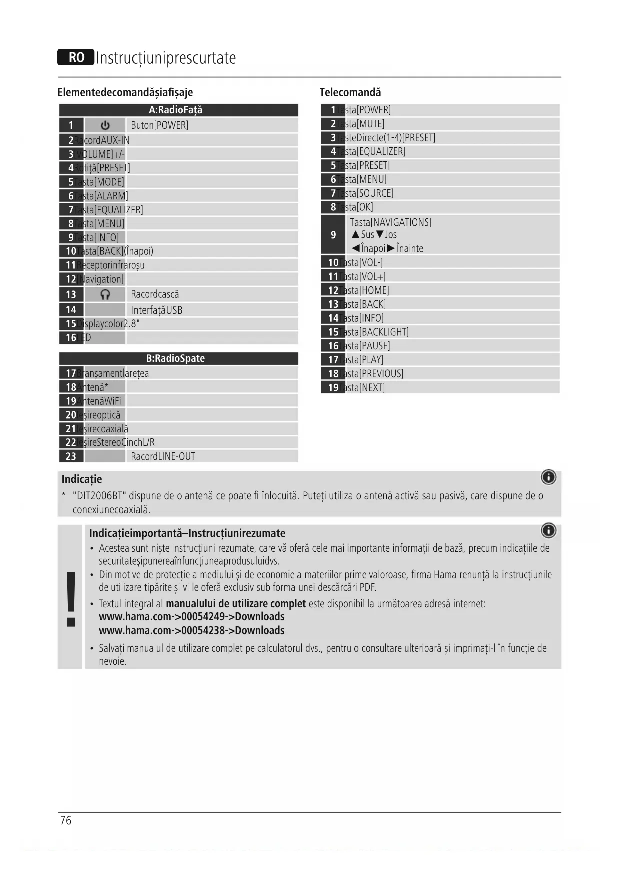 DIT2006BT - Radio HAMA - Manual de utilizare gratuit