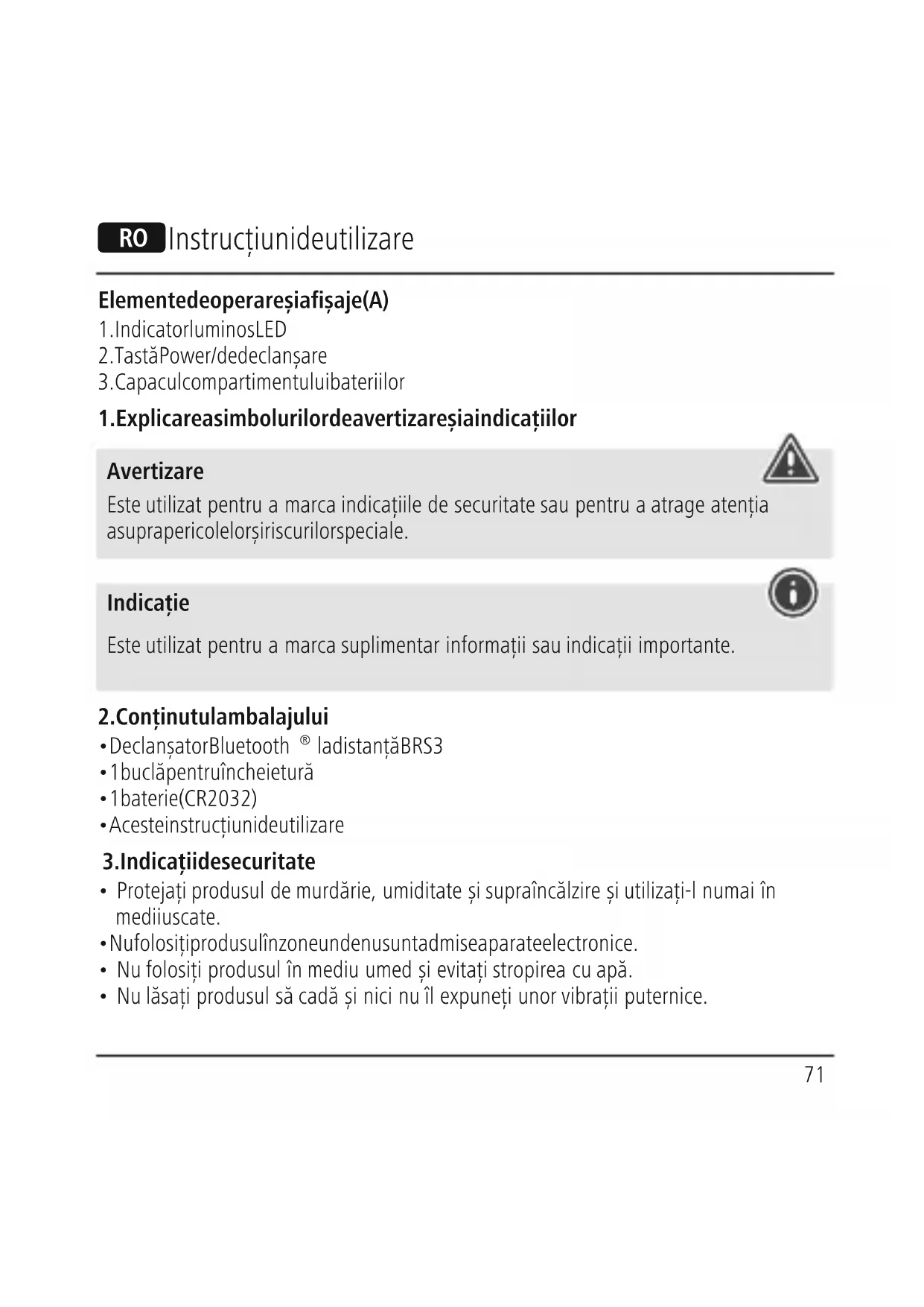 1. Explicarea simbolurilor de avertizare și a indicațiilor