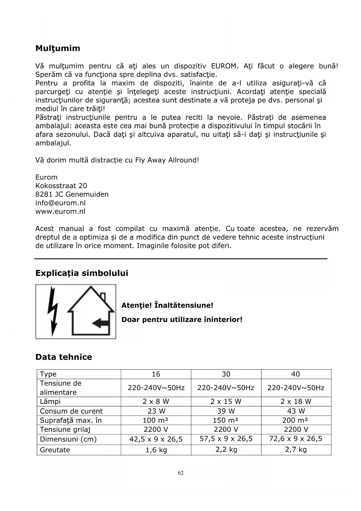 MANUAL DE UTILIZARE Fly Away 40 Allround Eurom