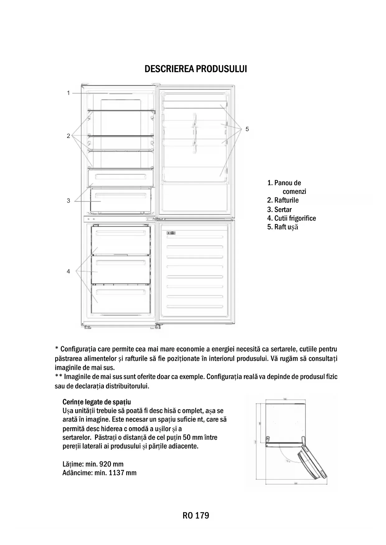 - Configurația care permite cea mai mare economie a energiei necesită ca sertarele, cutiile pentru păstrarea alimentelor și rafturile să fie poziționate în interiorul produsului. Vă rugăm să consultați imaginile de mai sus. ** Imaginile de mai sus sunt oferite doar ca exemple. Configurația reală va depinde de produsul fizic sau de declarația distribuitorului.