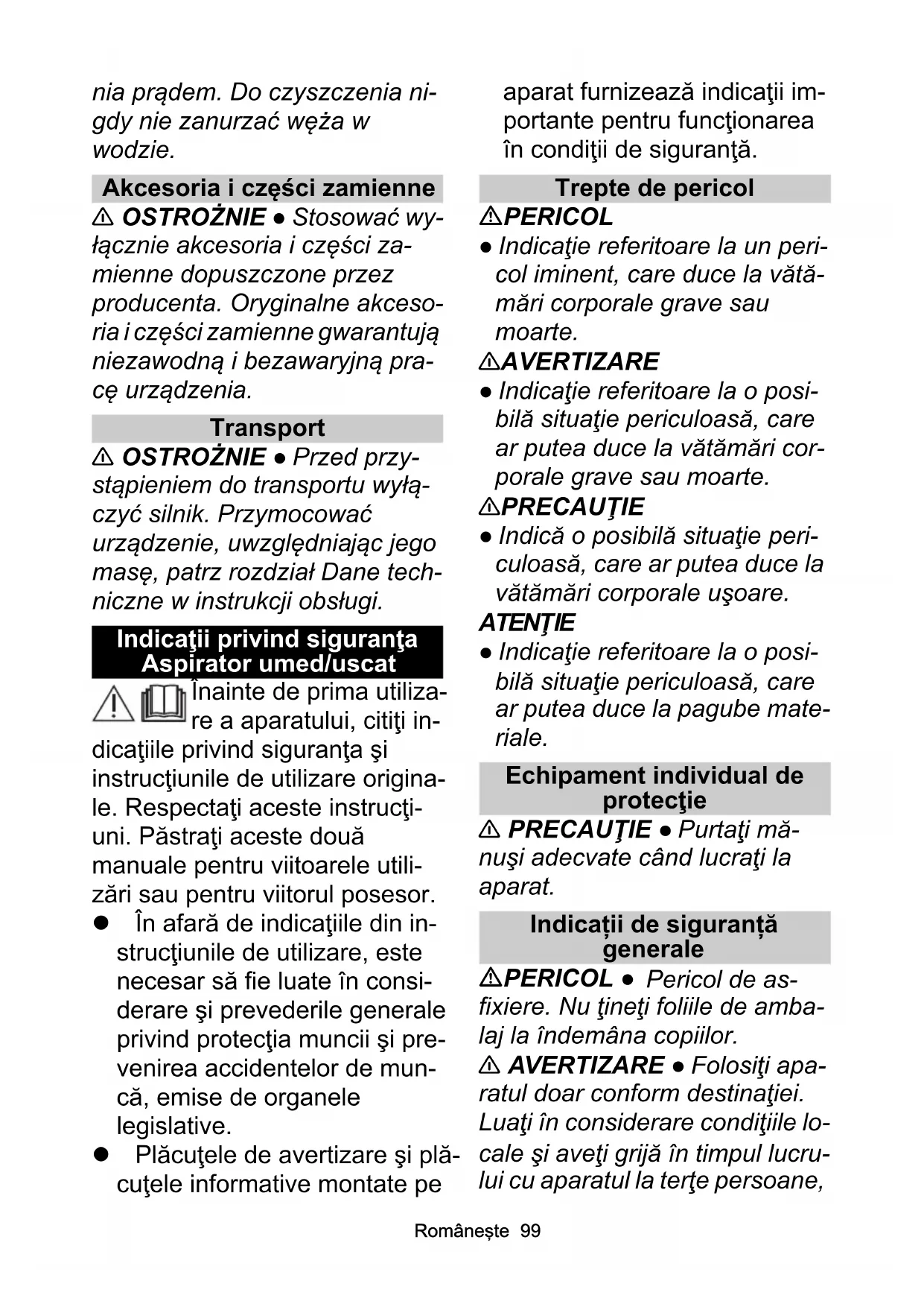 MANUAL DE UTILIZARE NT 301 Ap Te L Kärcher