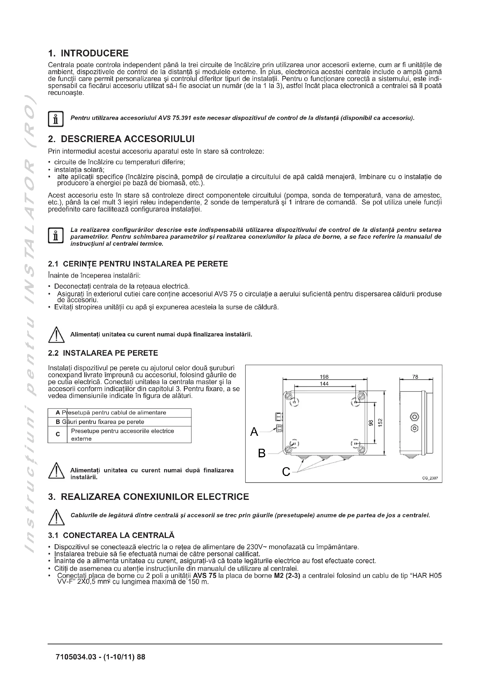 2.1 CERINTE PENTRU INSTALLAREA PE PERETE