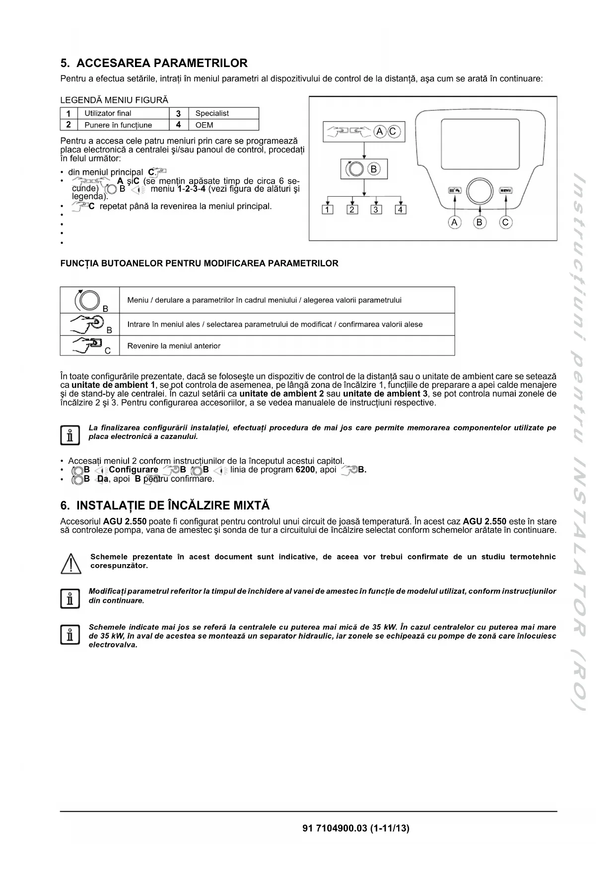 91 7104900.03 (1-11/13) Instrucţiuni pentru INSTALATOR (RO)
