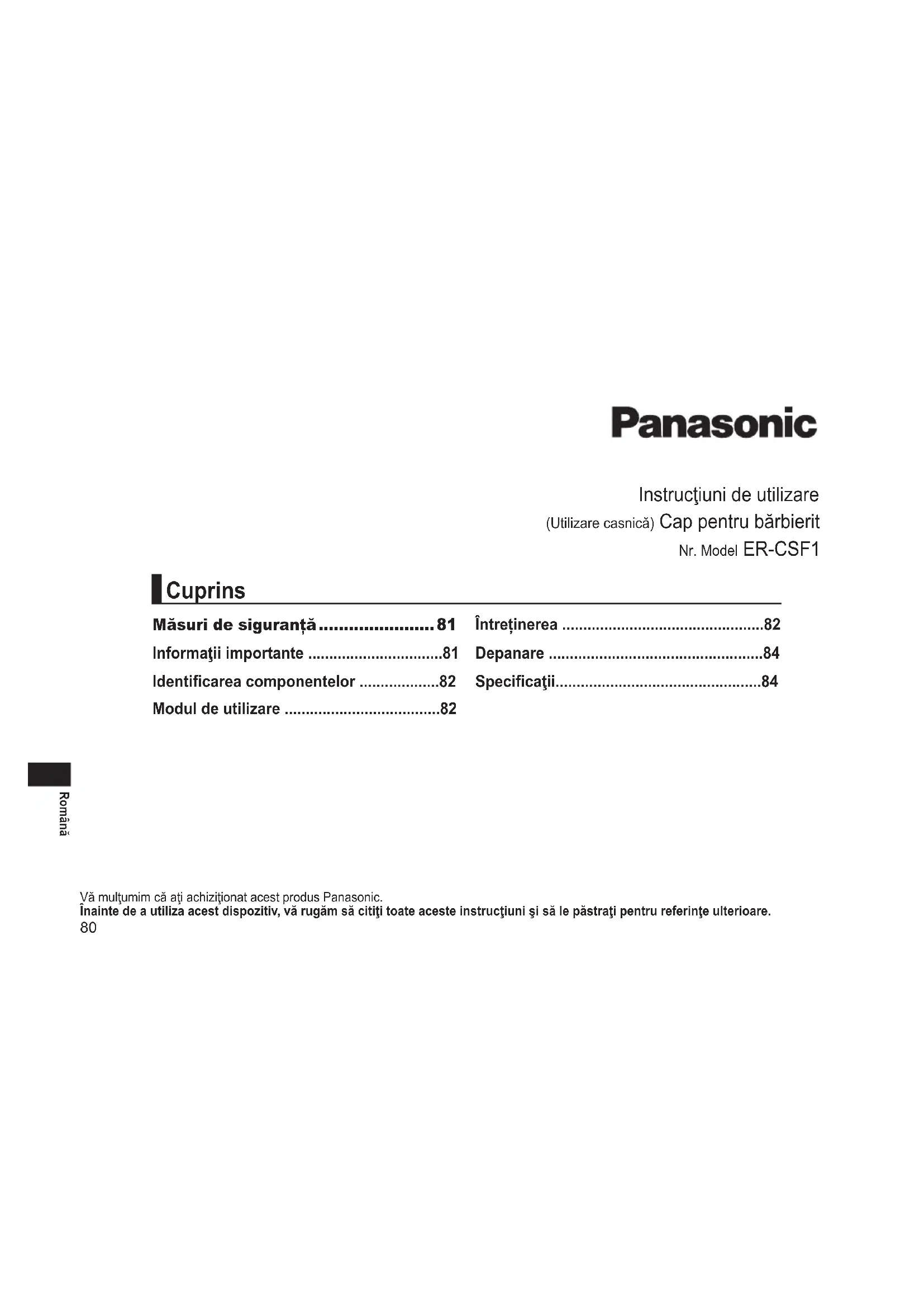 Descărcați instrucțiunile pentru Accesoriu de ras în format PDF gratuit! Găsiți manualul dvs. ERCSF1 - PANASONIC și luați din nou în mână dispozitivul dvs. electronic. Pe această pagină sunt publicate toate documentele necesare pentru utilizarea dispozitivului dvs. ERCSF1 mărcii PANASONIC.