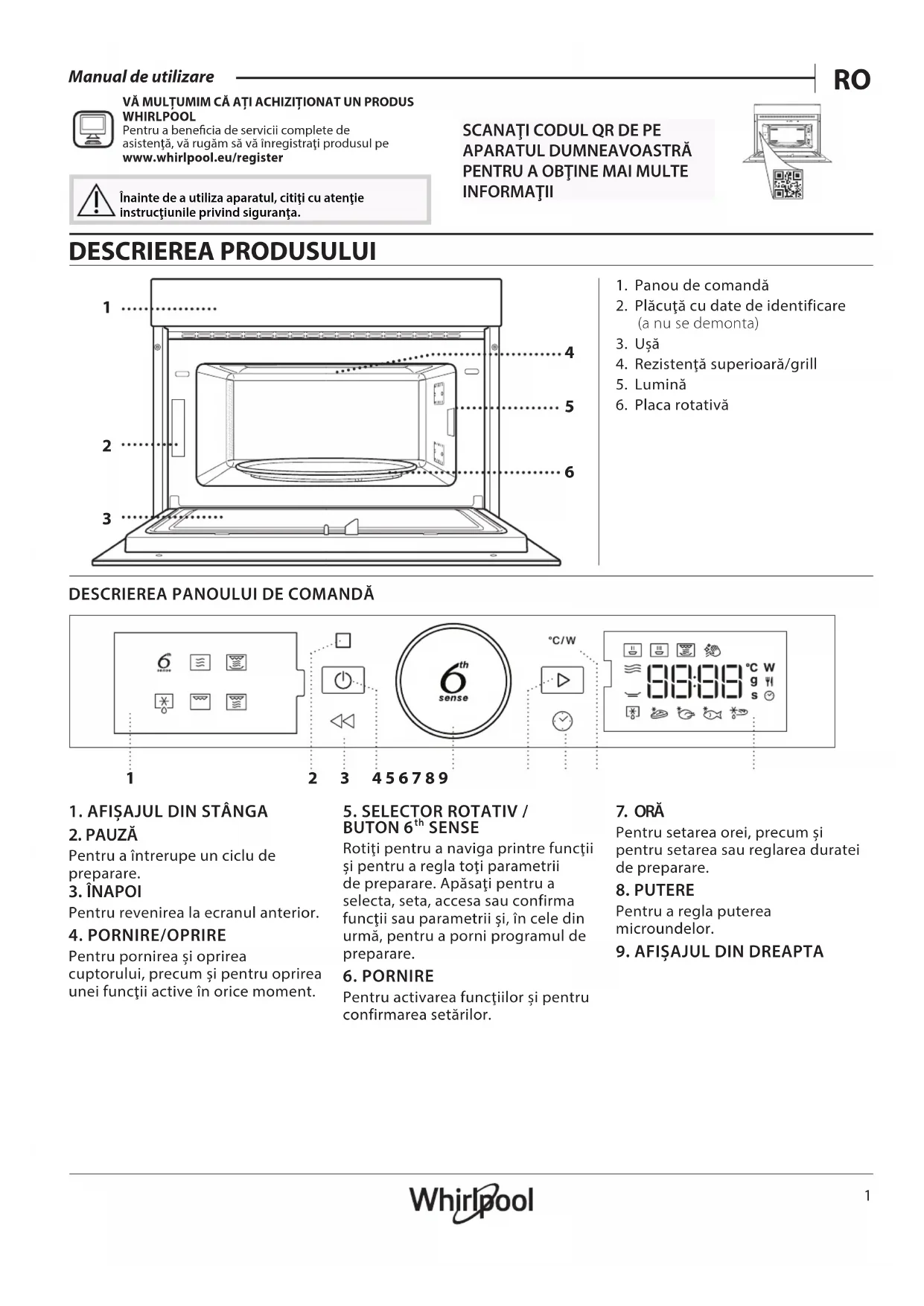 VĂ MULŢUMIM CĂ AŢI ACHIZIŢIONAT UN PRODUS WHIRLPOOL Pentru a benecia de servicii complete de asistenţă, vă rugăm să vă înregistraţi produsul pe www . whirlpool. eu/ register Înainte de a utiliza aparatul, citiţi cu atenţie instrucţiunile privind siguranţa.